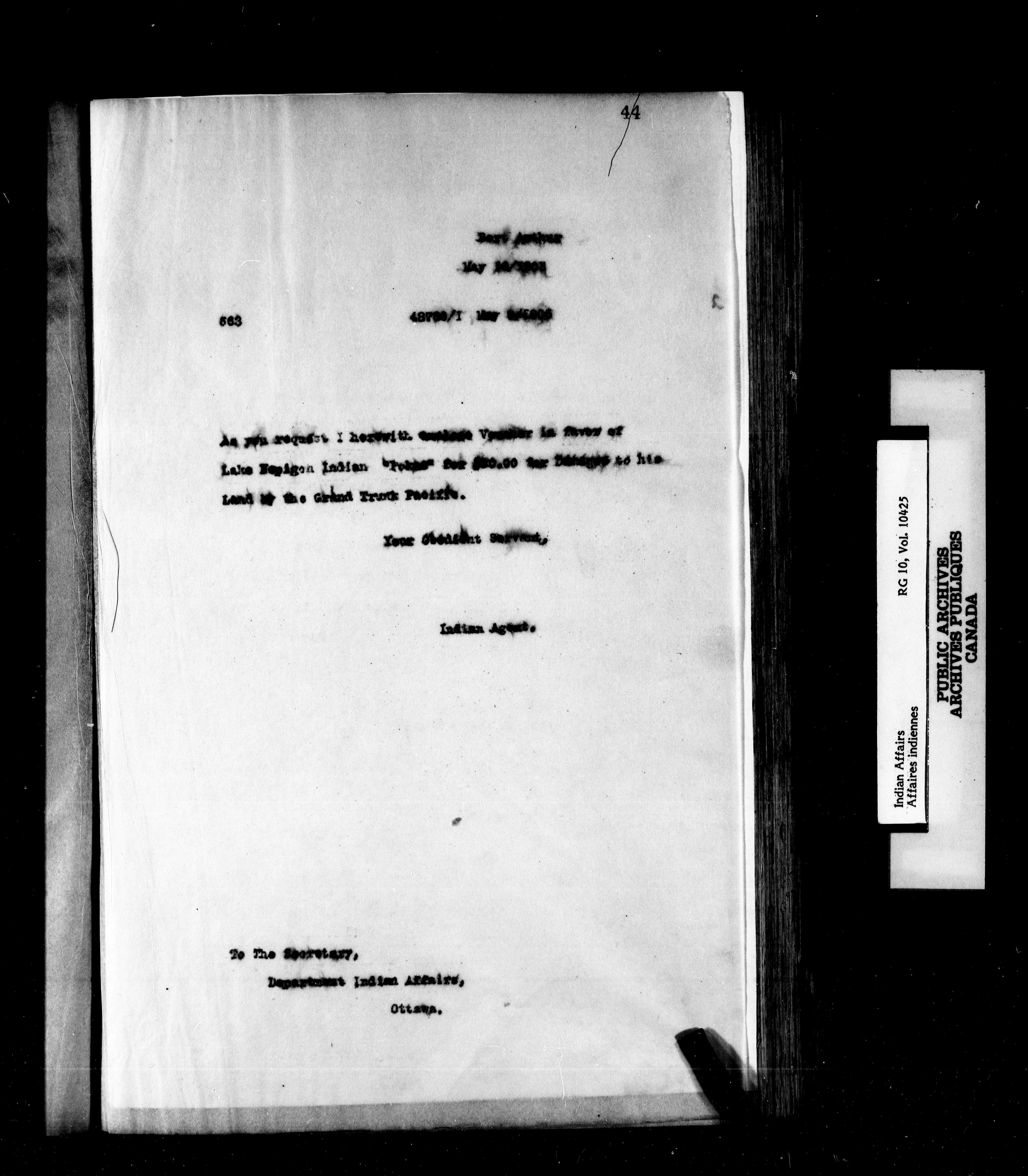 Department of Indian Affairs : Port Arthur Agency : T-2030