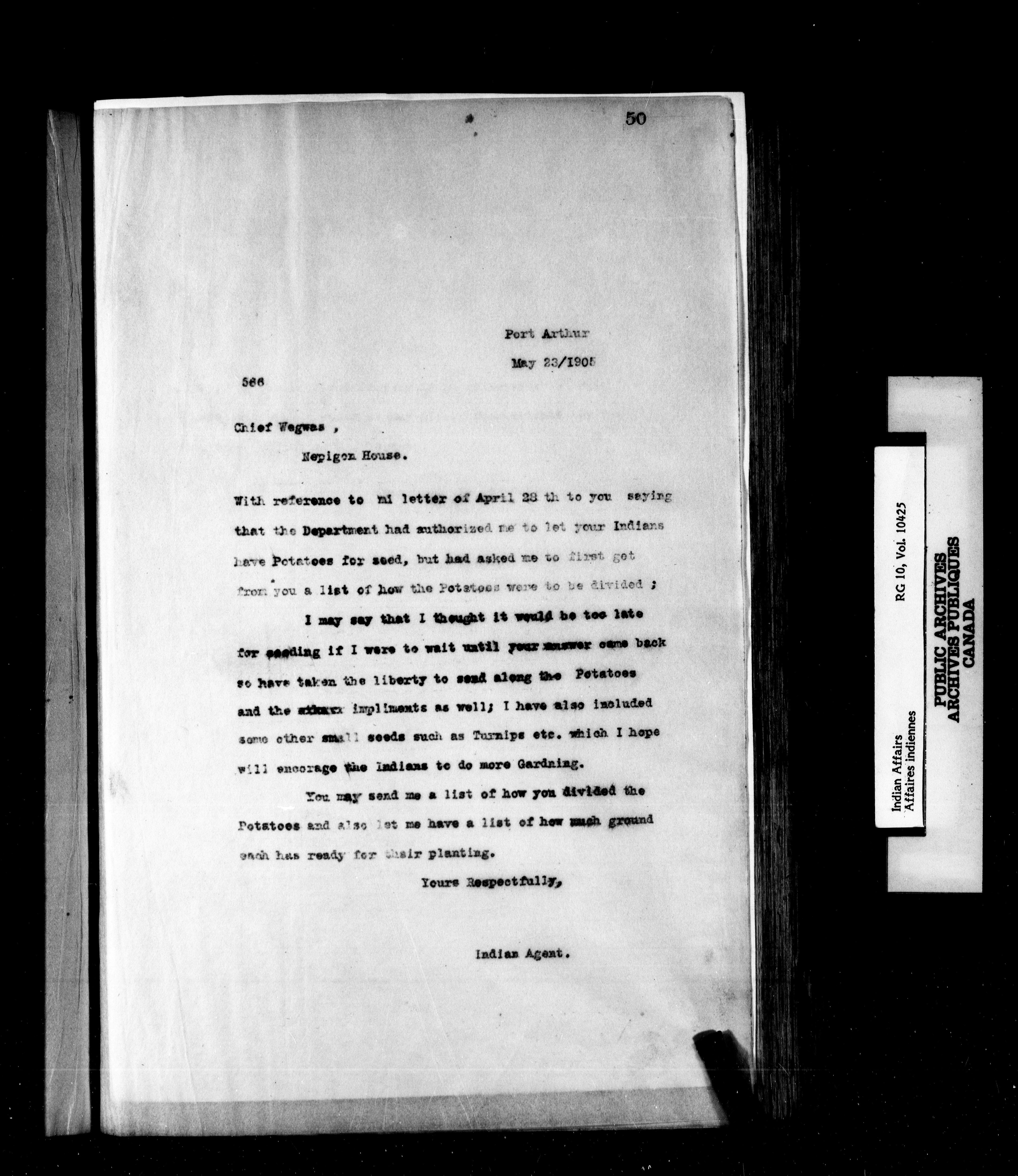 Department of Indian Affairs : Port Arthur Agency : T-2030