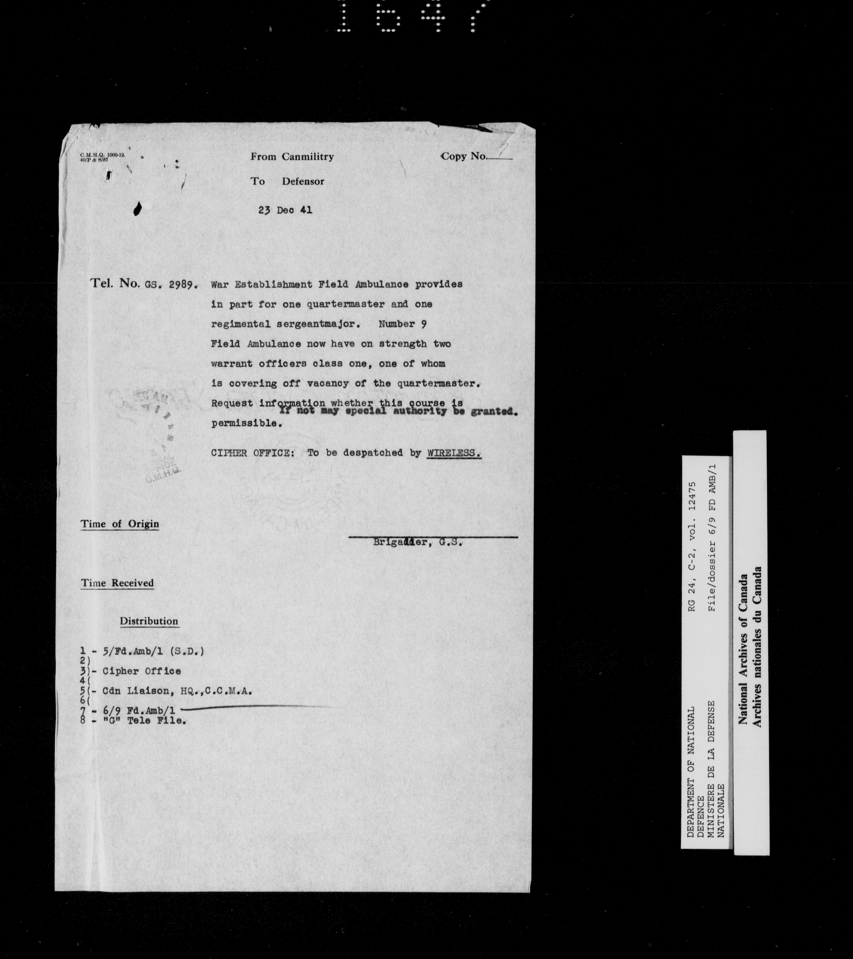 Canadian Military Headquarters, London : T-20306