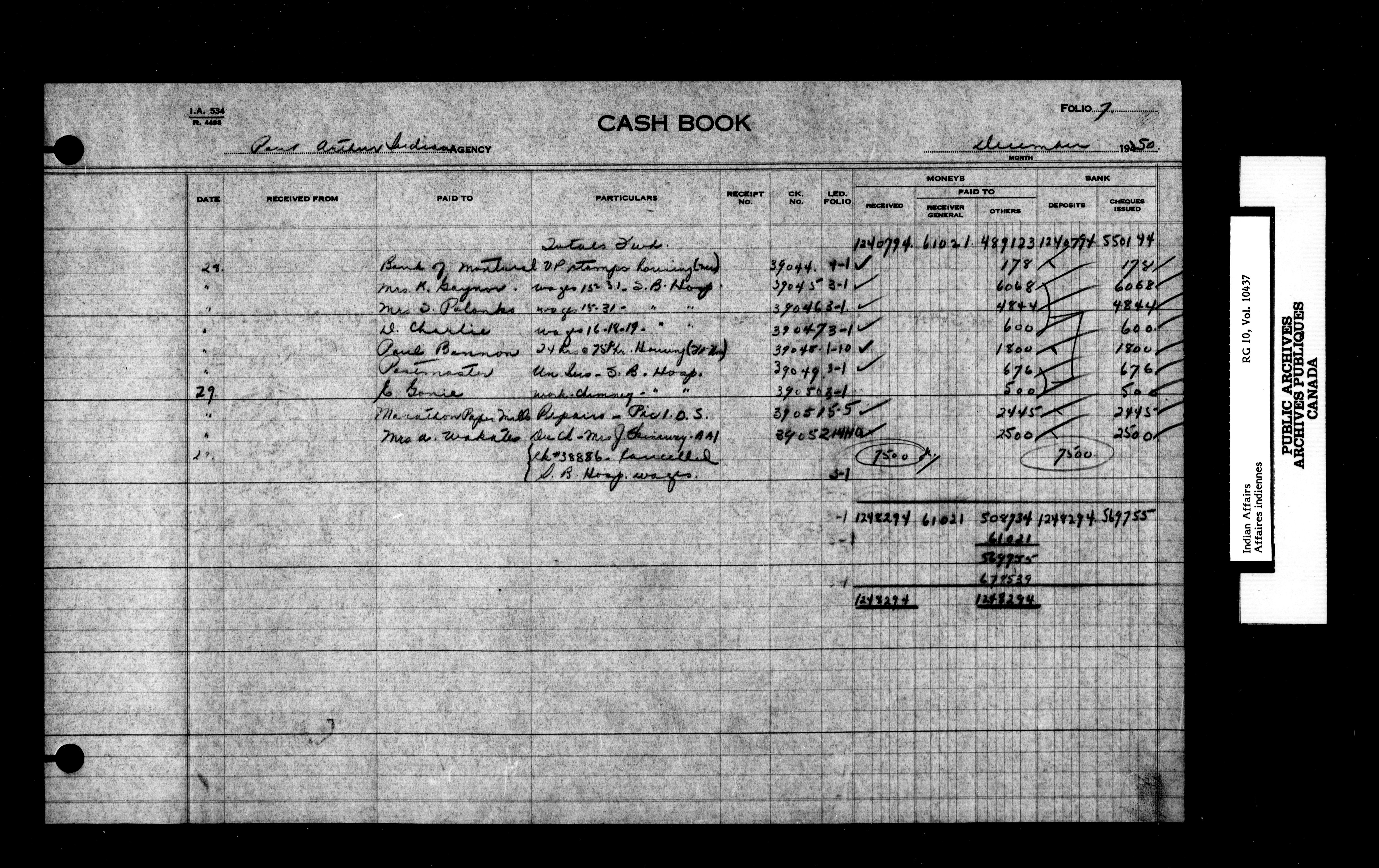 Port Arthur Agency : Cash ledger, 1935-1949 - 2033