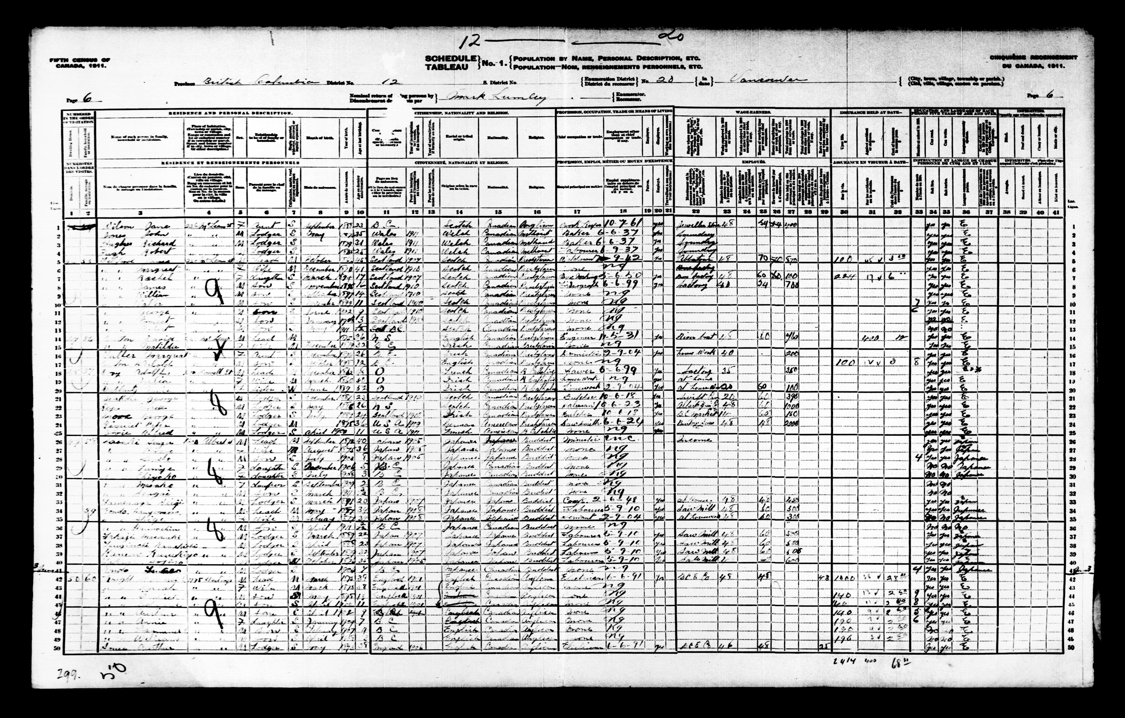 Census returns for the 1911 Canadian census - T-20337