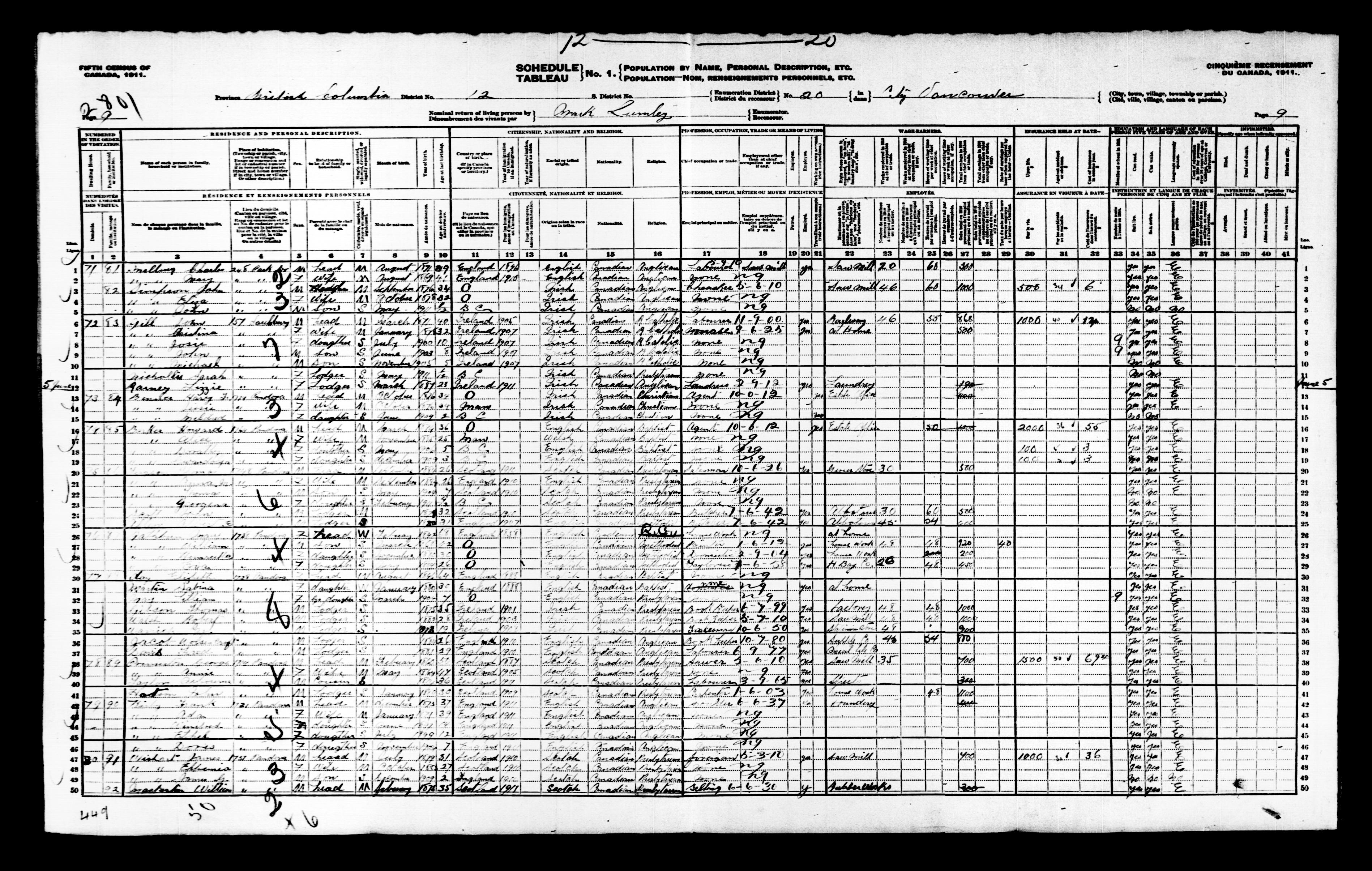 Census returns for the 1911 Canadian census - T-20337