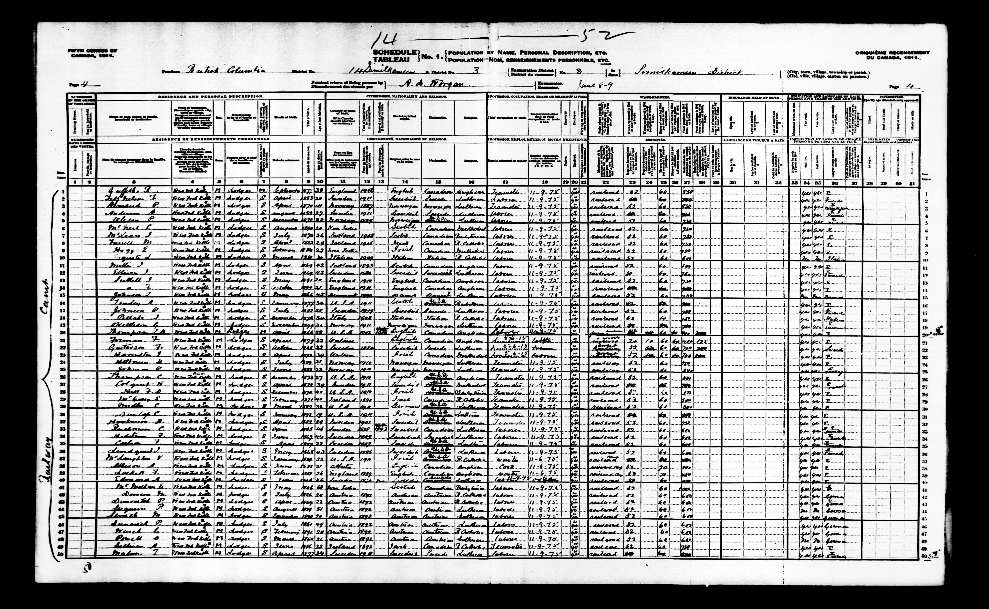 Census returns for the 1911 Canadian census : T-20339