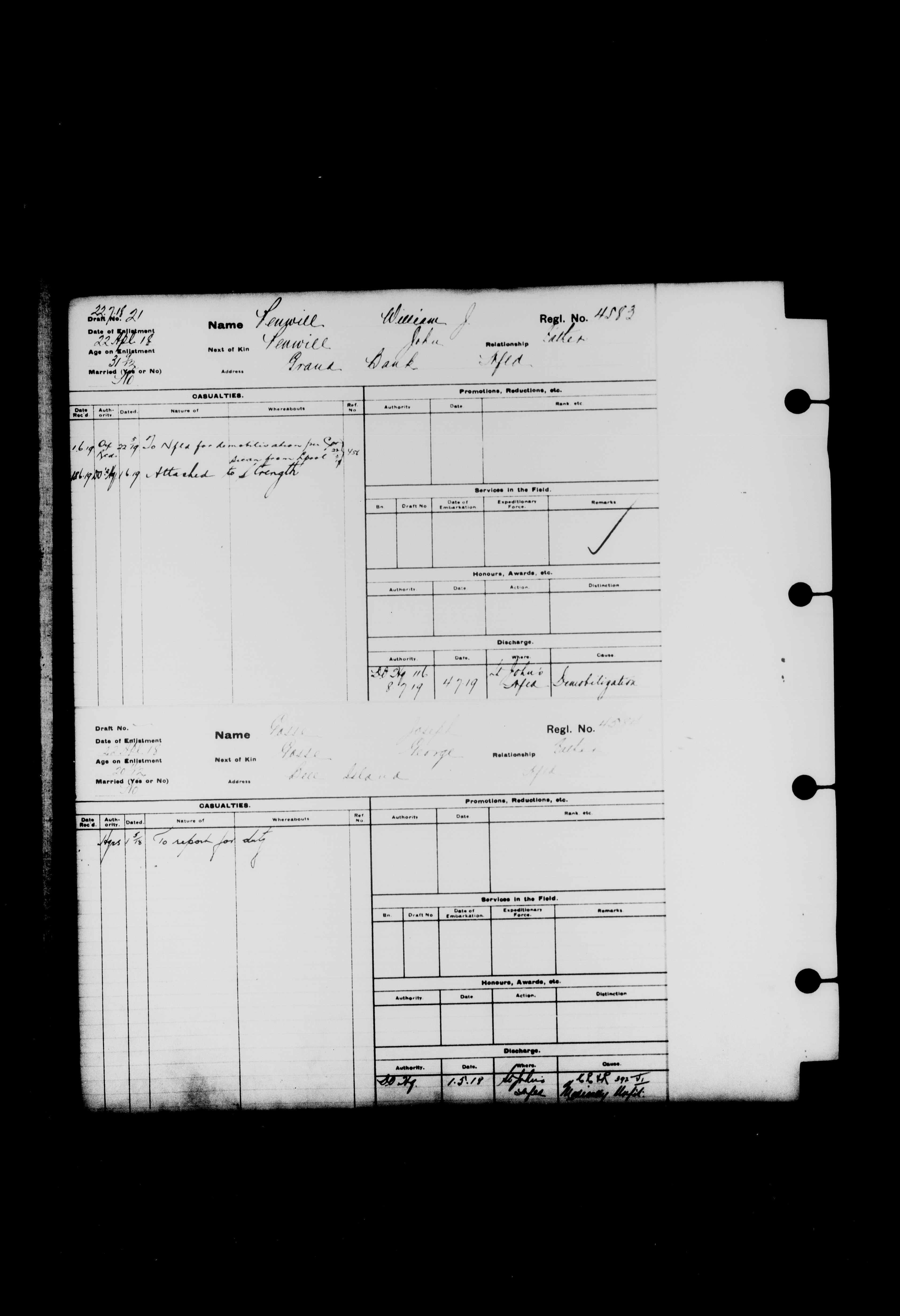 Summary records of military service for members of the Royal Newfoundland Regiment and bandsmen and the Newfoundland Forestry Corps (1914-1919) - 2042