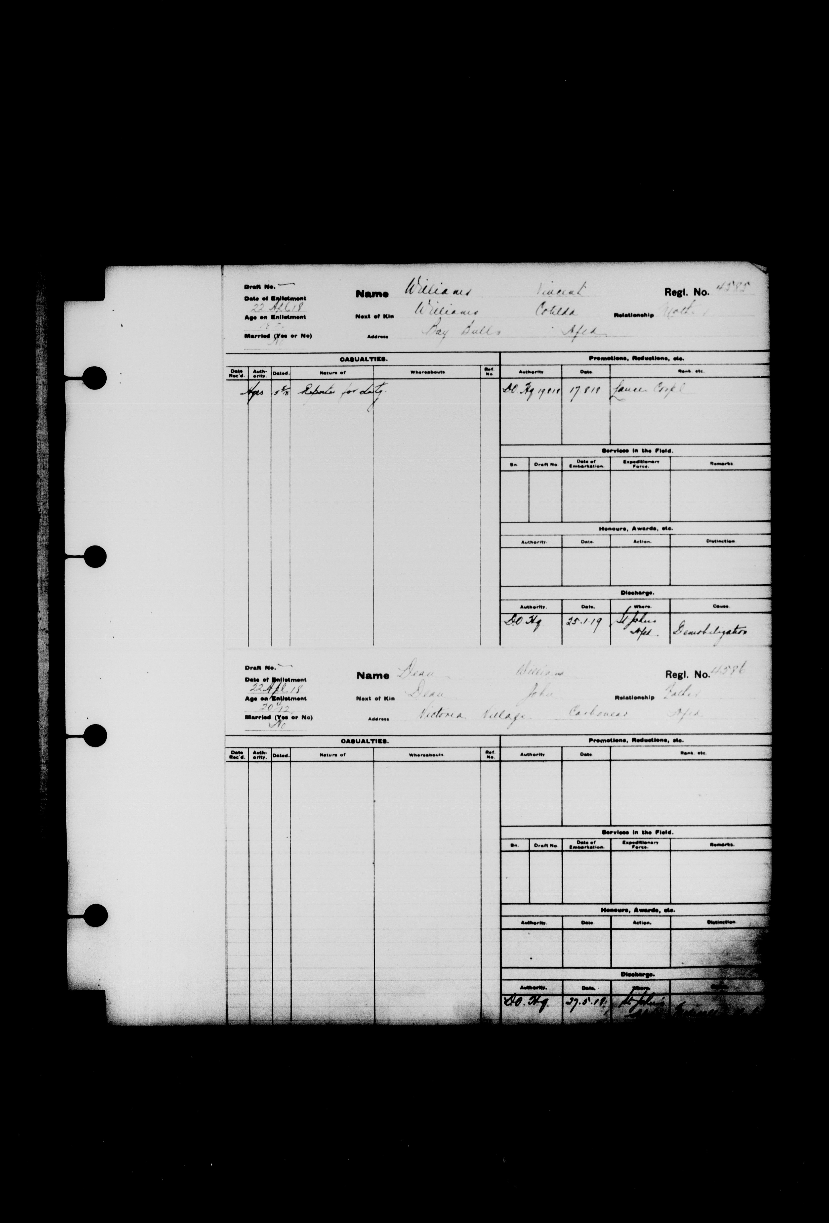 Summary records of military service for members of the Royal Newfoundland Regiment and bandsmen and the Newfoundland Forestry Corps (1914-1919) - 2042
