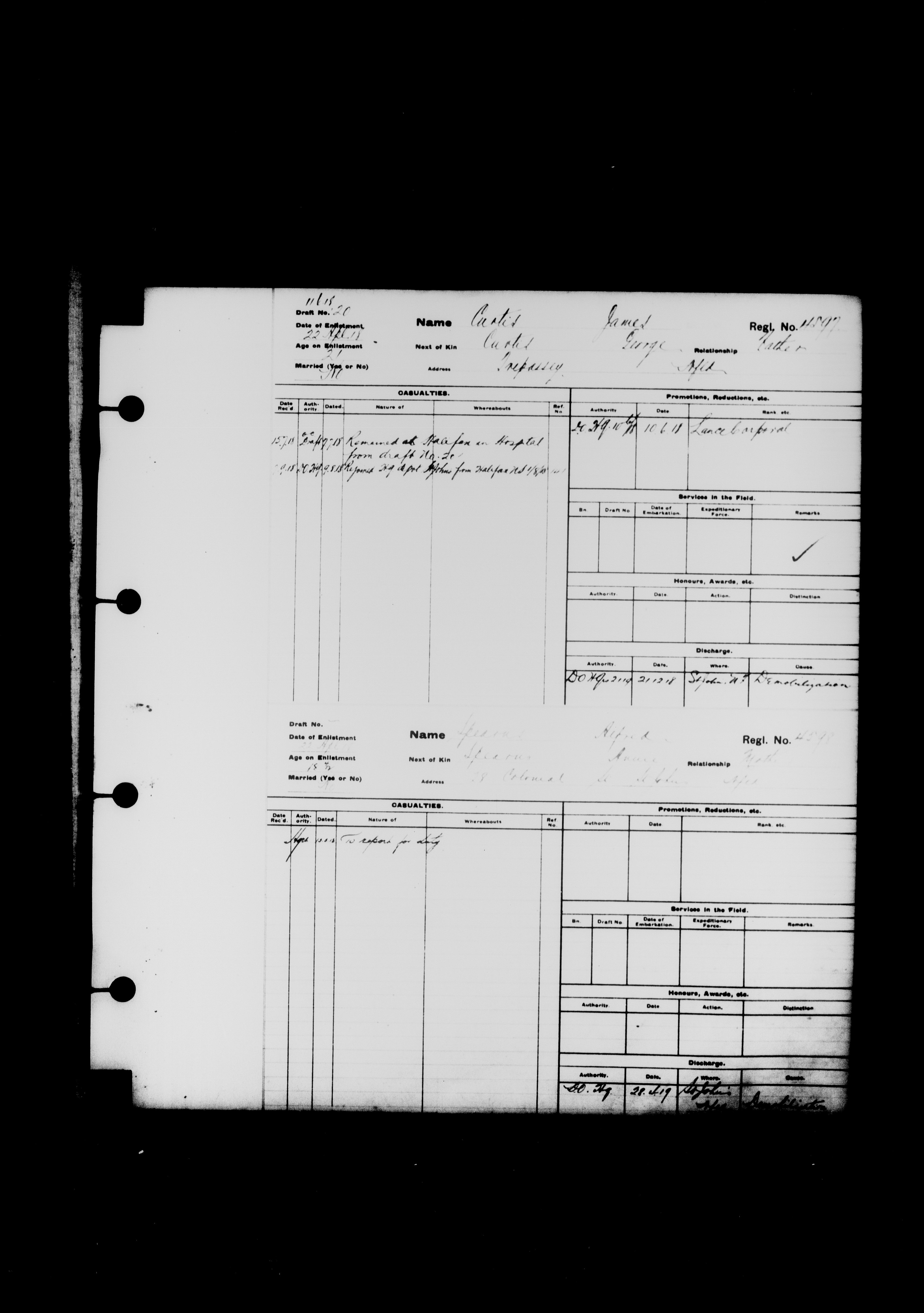 Summary records of military service for members of the Royal Newfoundland Regiment and bandsmen and the Newfoundland Forestry Corps (1914-1919) - 2042