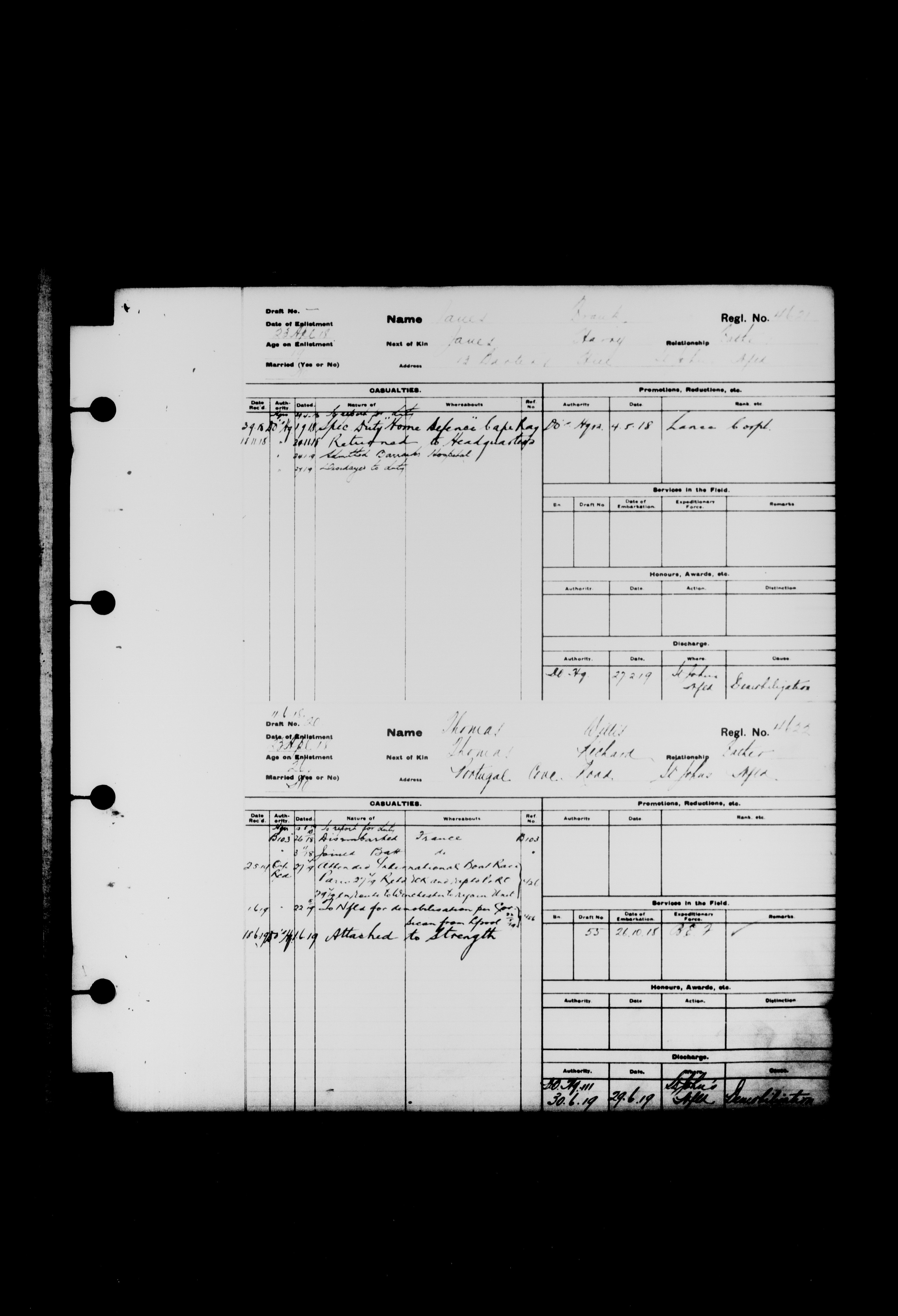 Summary records of military service for members of the Royal Newfoundland Regiment and bandsmen and the Newfoundland Forestry Corps (1914-1919) - 2042