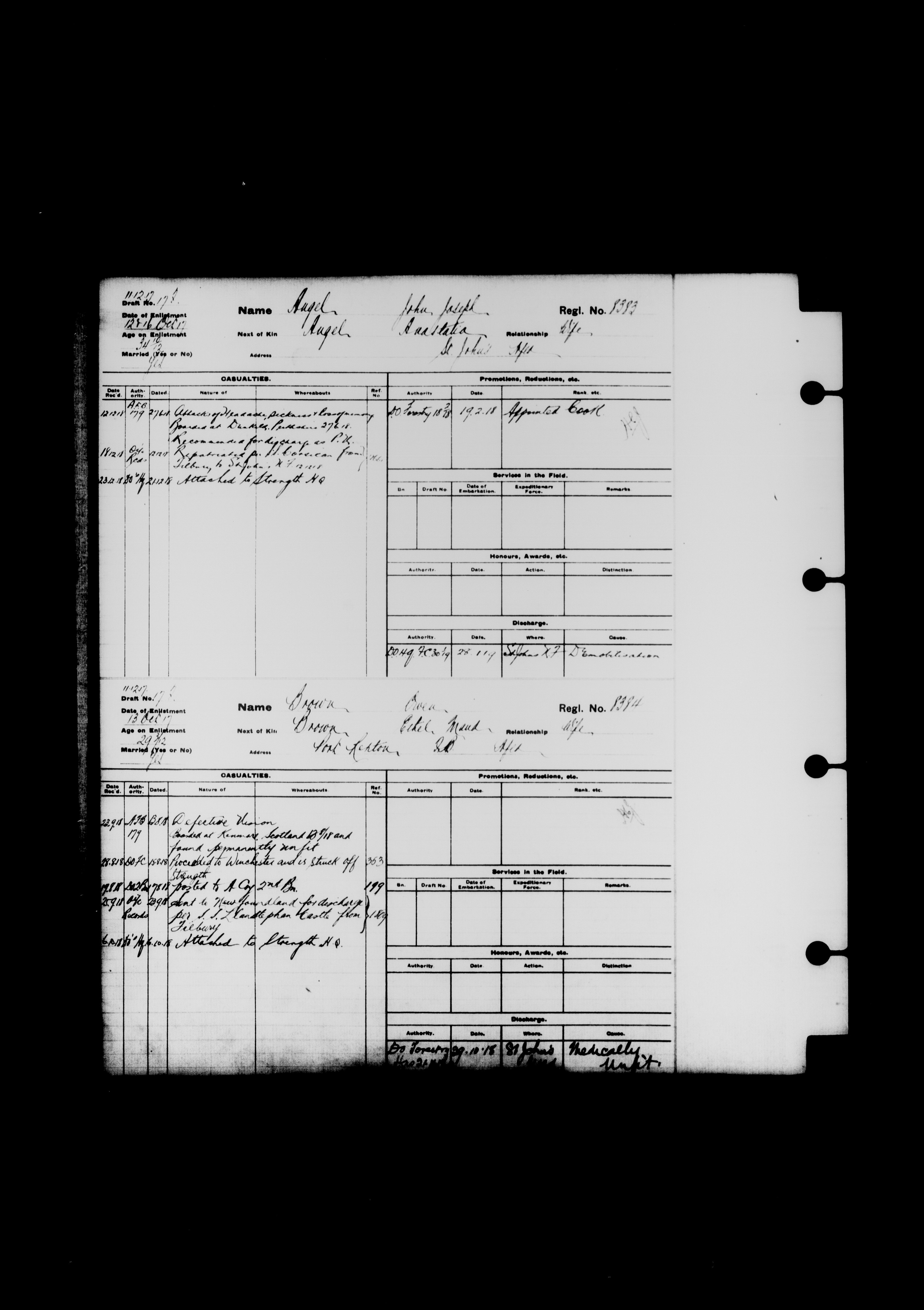 Summary records of military service for members of the Royal Newfoundland Regiment and bandsmen and the Newfoundland Forestry Corps (1914-1919) - 2043