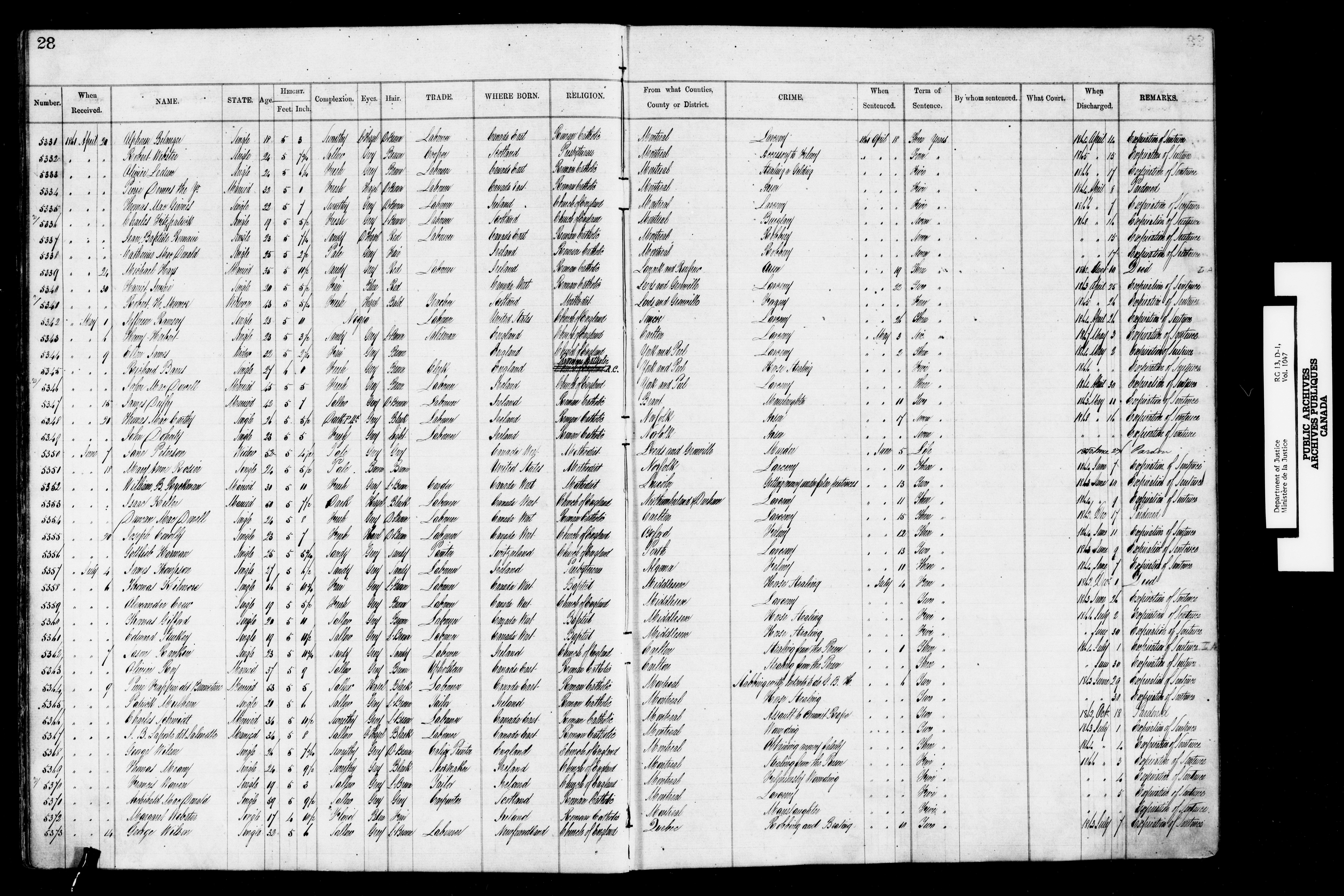 Kingston Penitentiary : Prisoner's record book, 1843-1890 - 2044