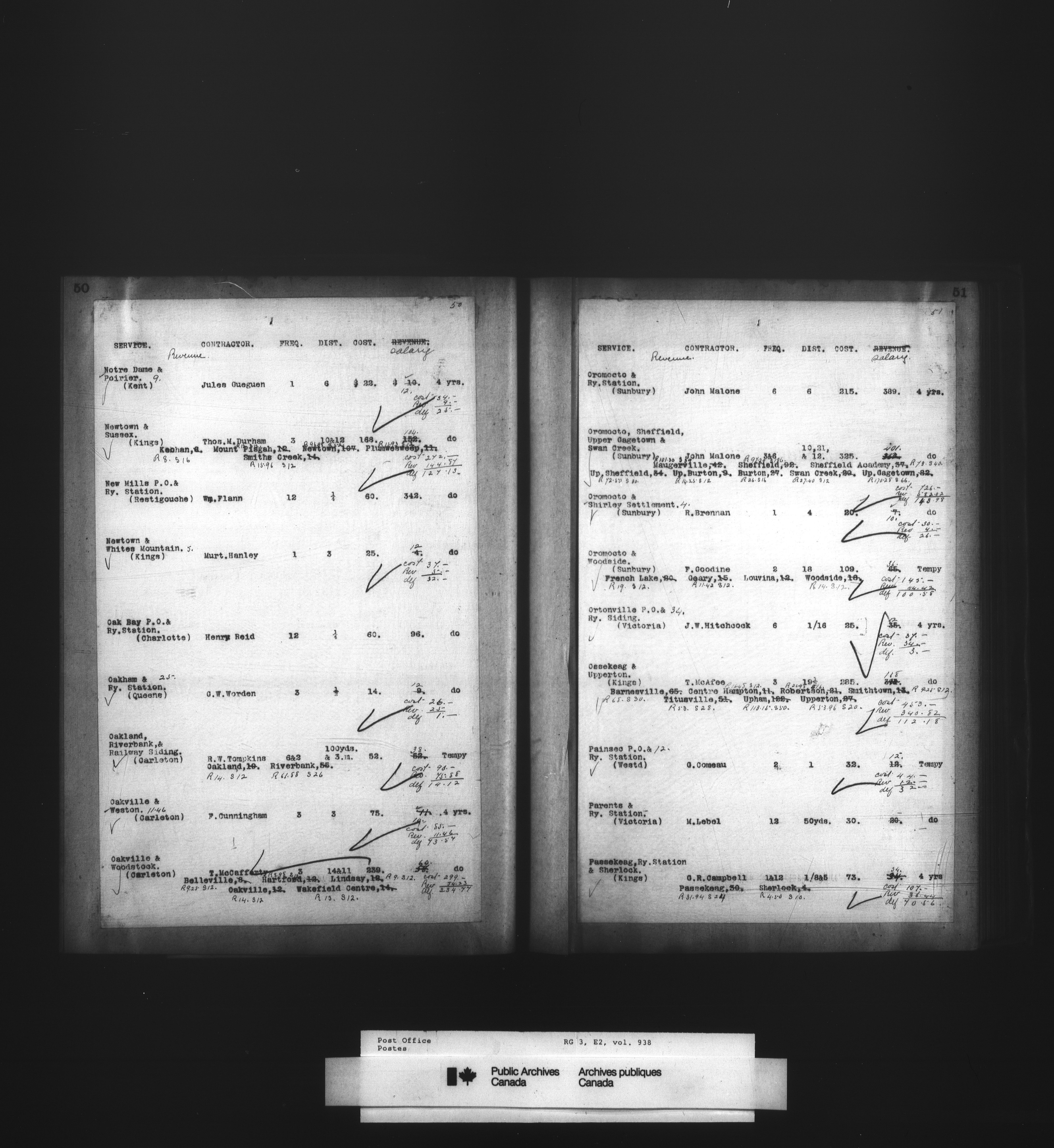 Post Office Department, Transportation Branch : Mail service contract registers - 2049