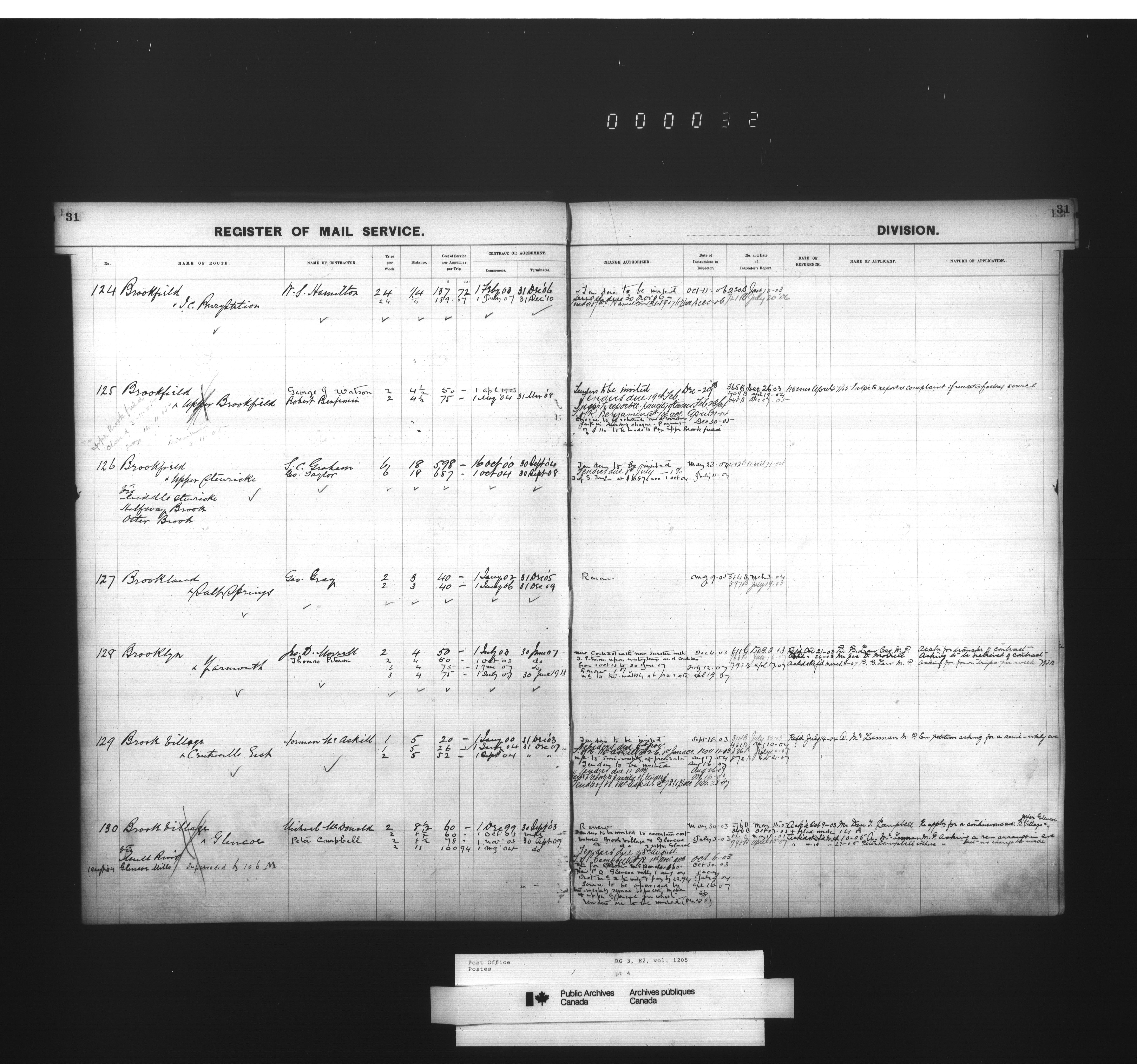 Post Office Department, Transportation Branch : Mail service contract registers - 2053