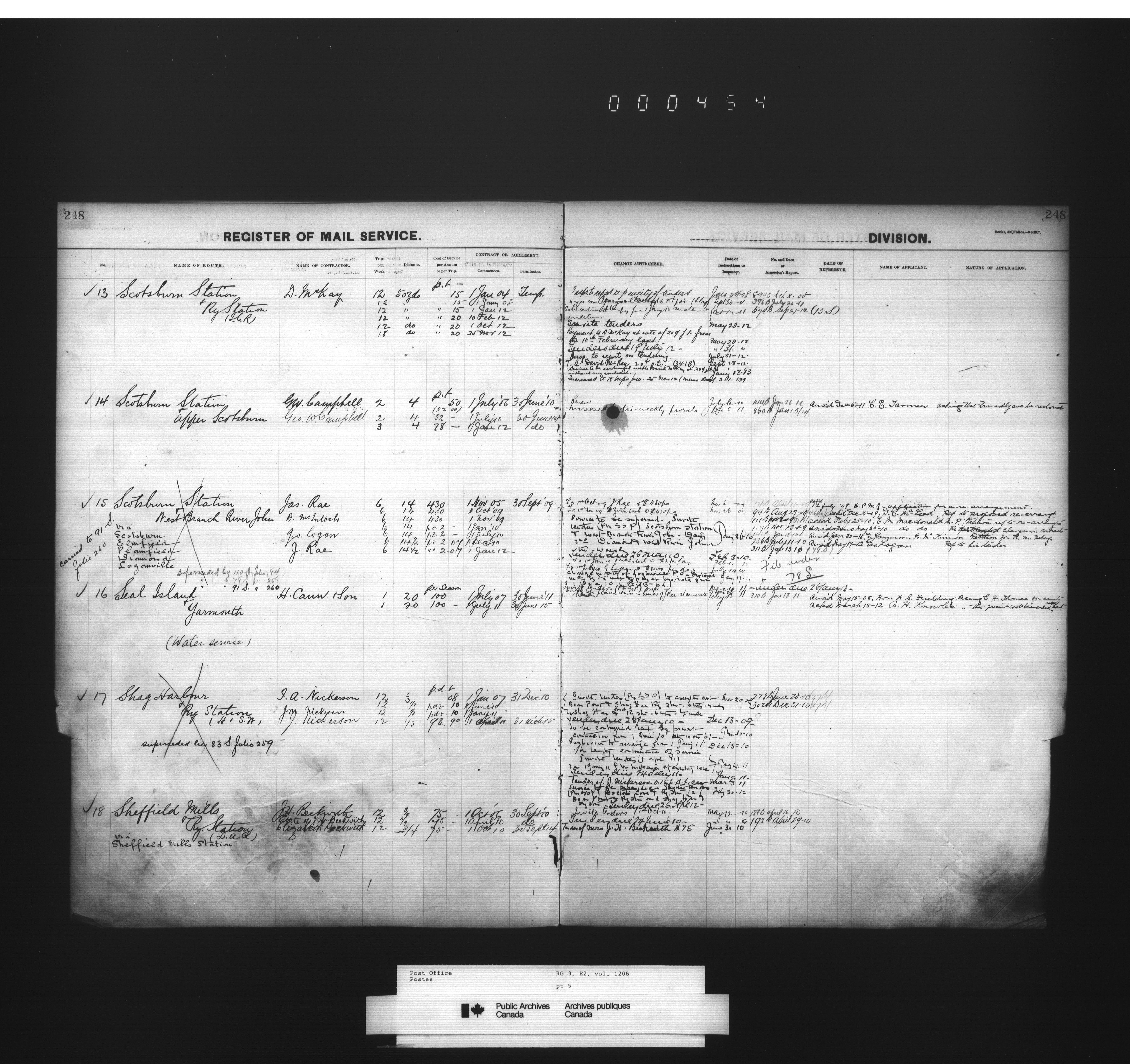 Post Office Department, Transportation Branch : Mail service contract registers - 2053