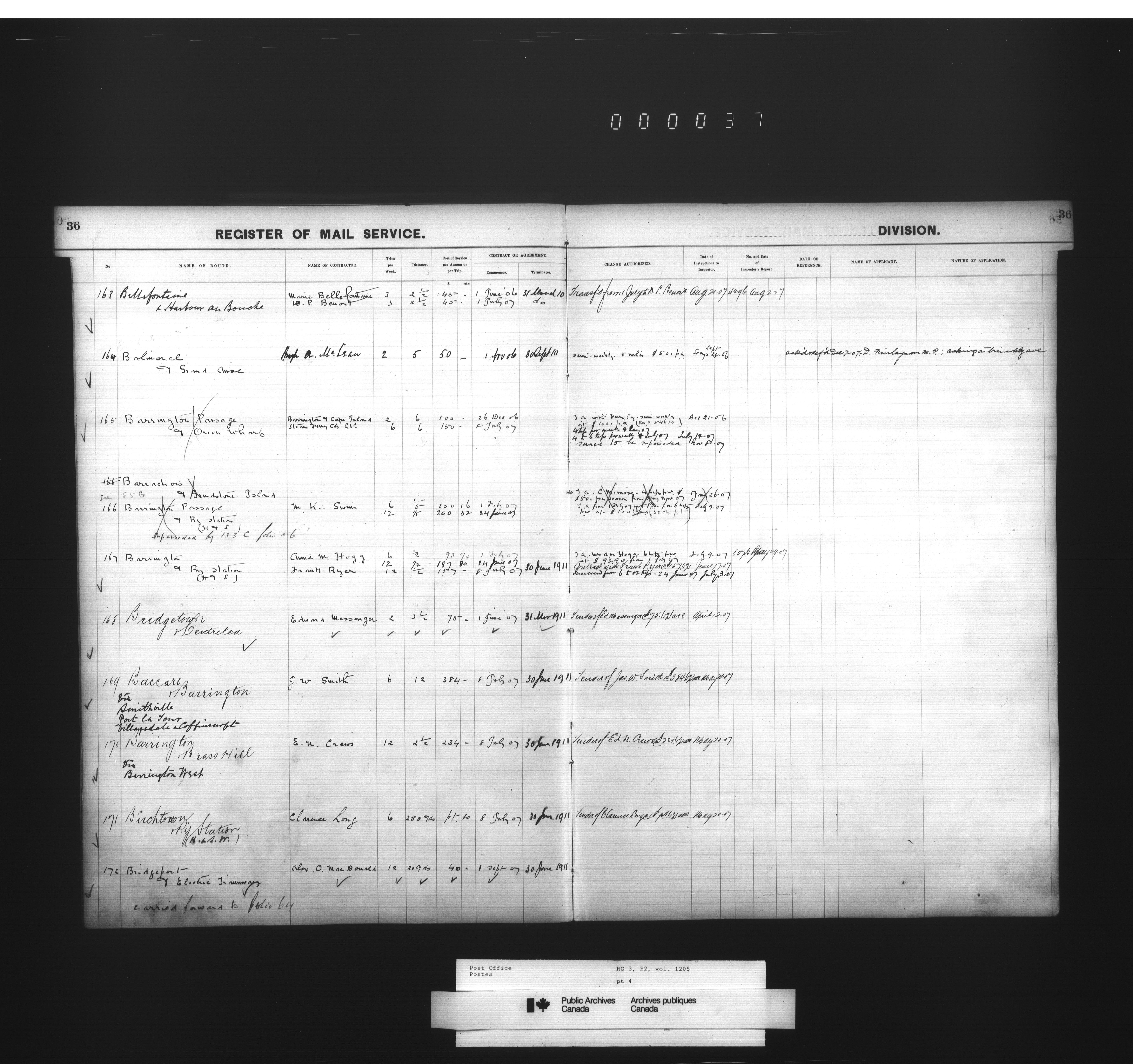 Post Office Department, Transportation Branch : Mail service contract registers - 2053