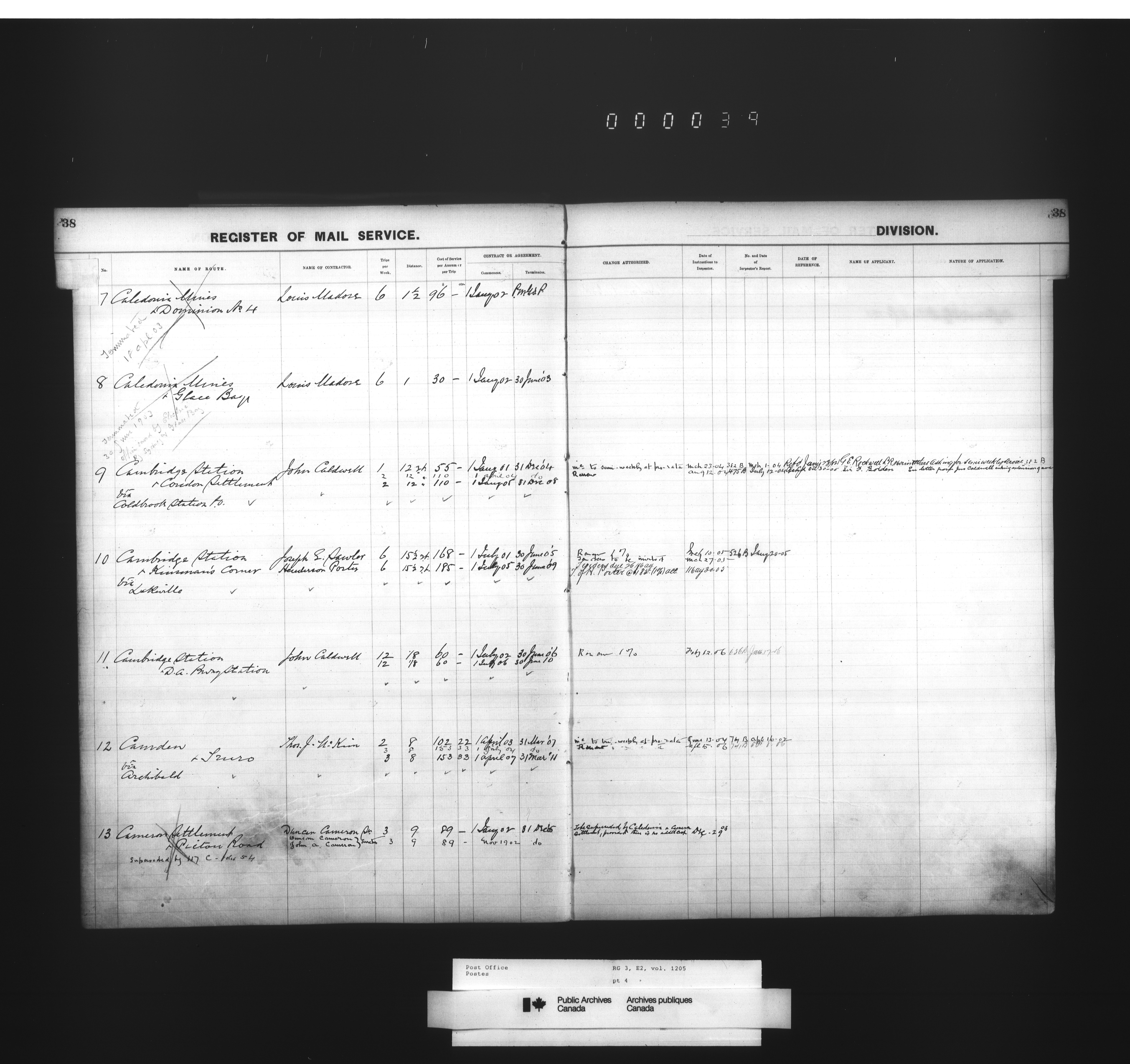Post Office Department, Transportation Branch : Mail service contract registers - 2053