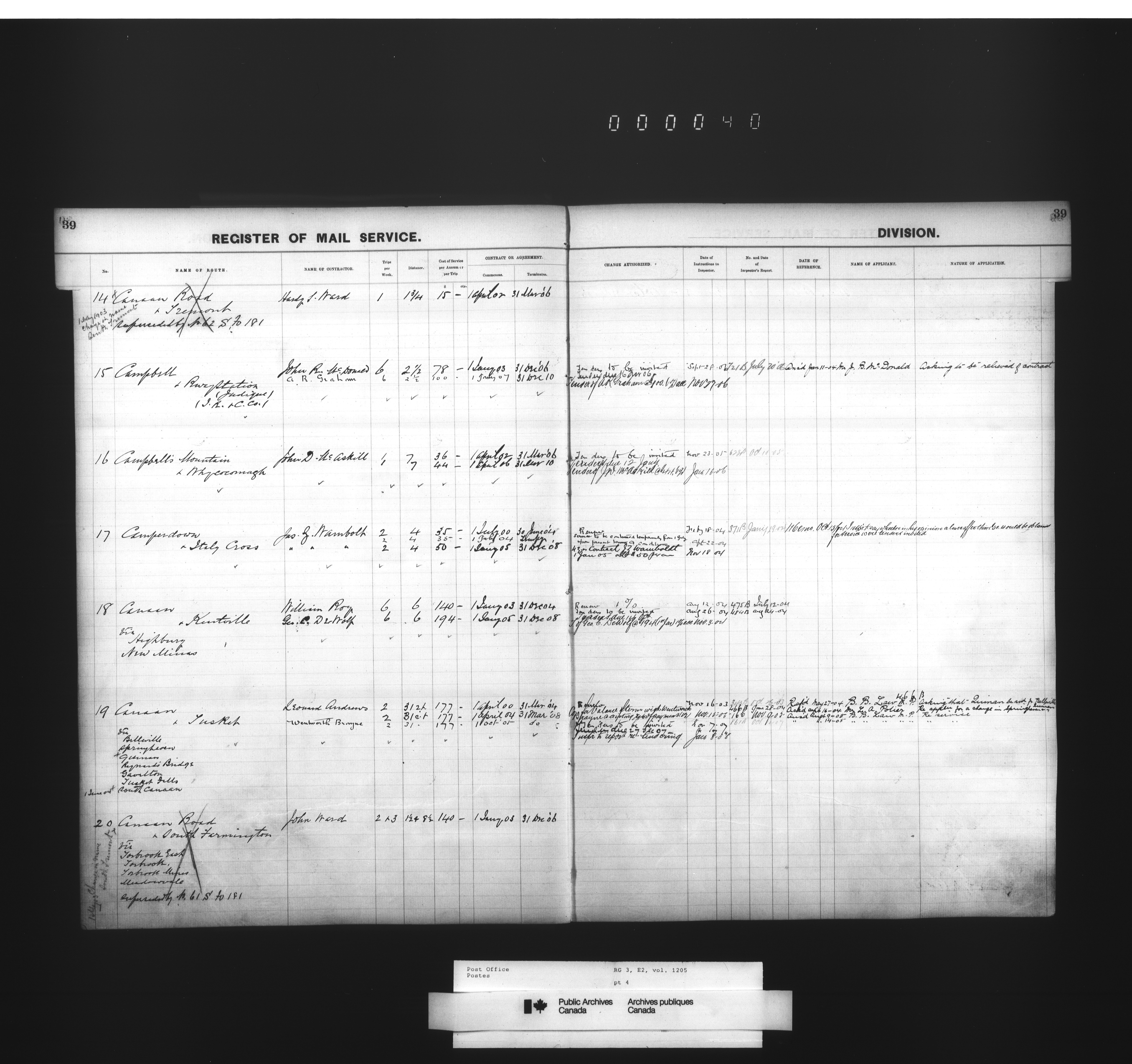 Post Office Department, Transportation Branch : Mail service contract registers - 2053
