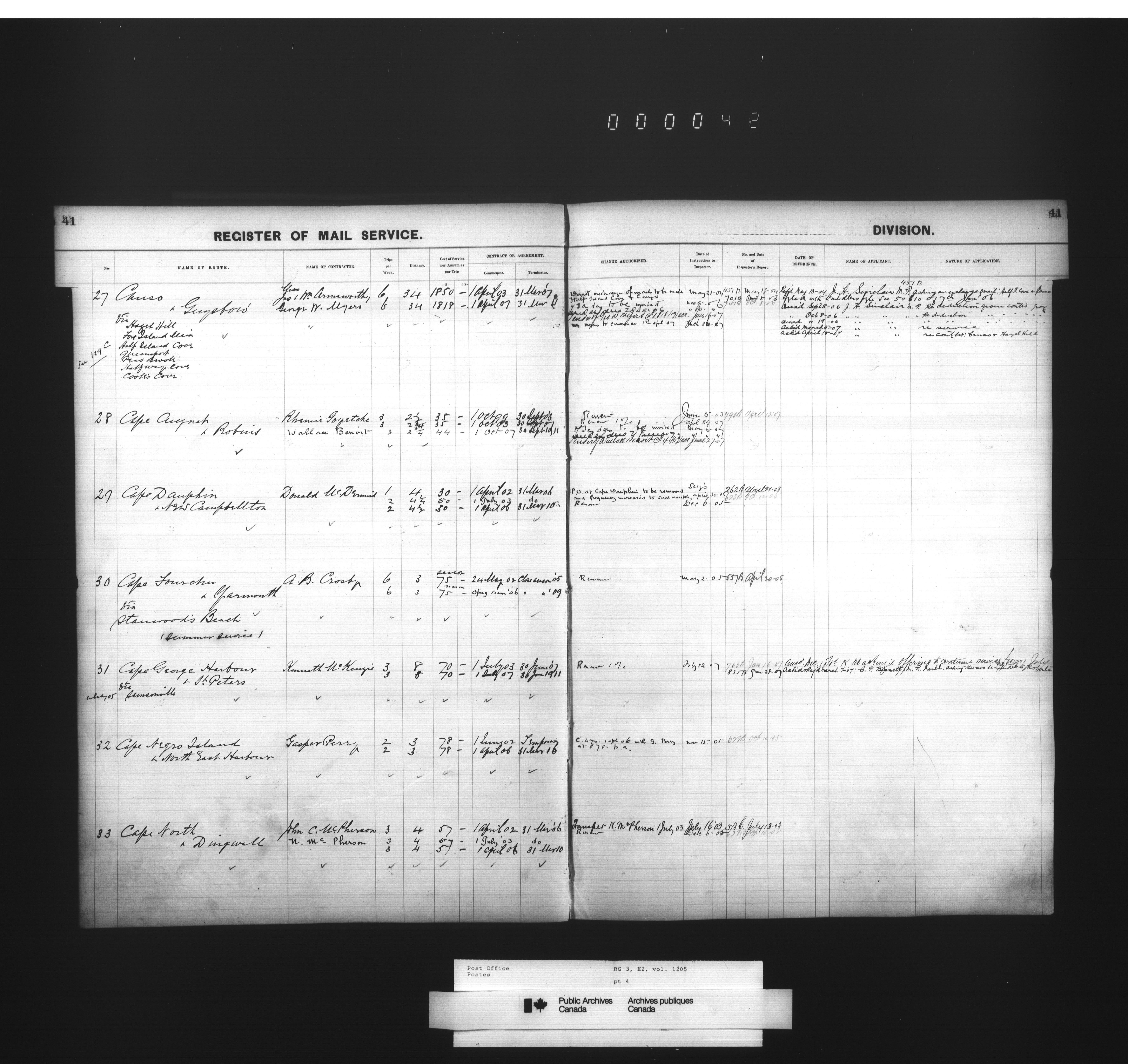 Post Office Department, Transportation Branch : Mail service contract registers - 2053