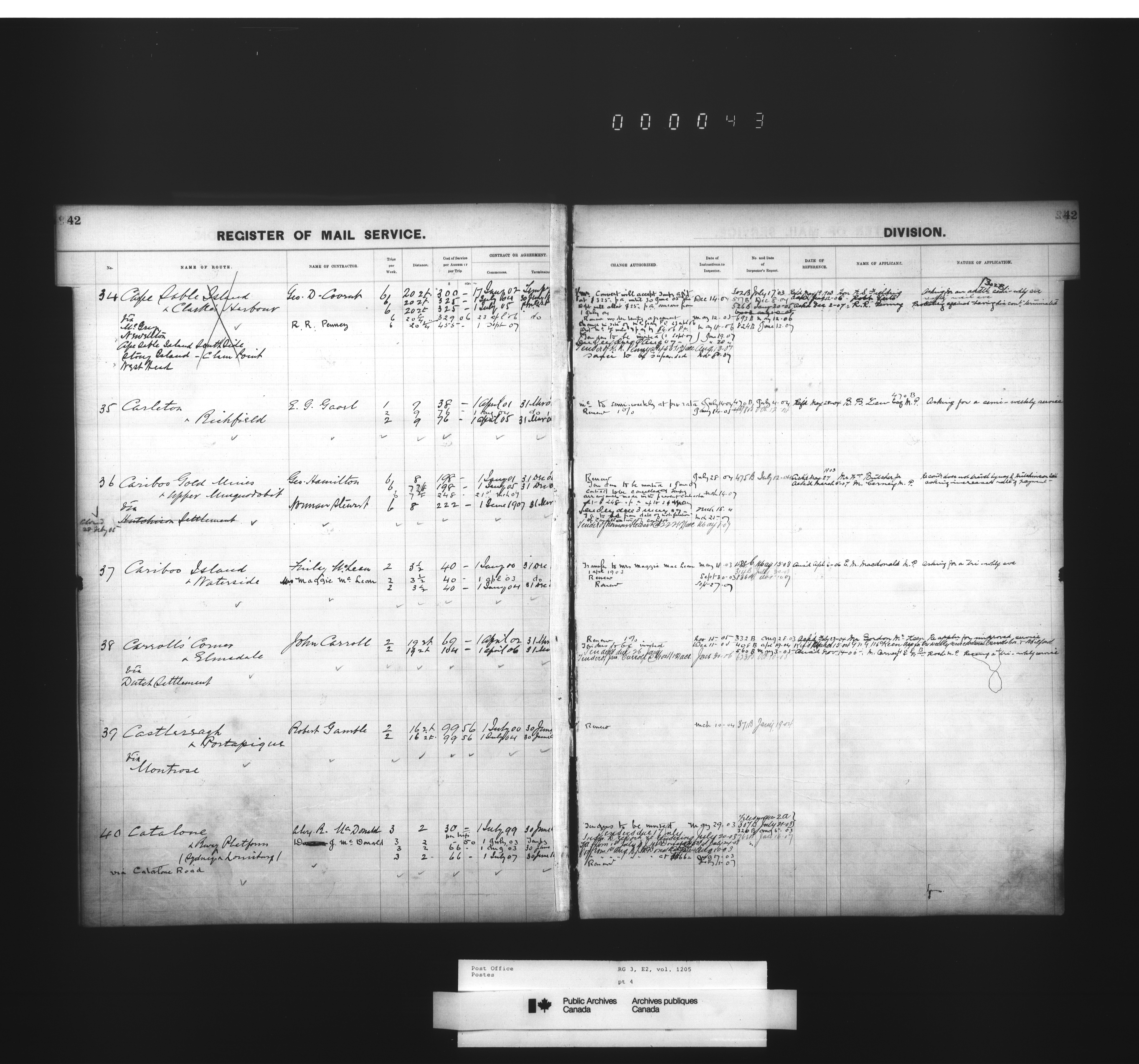 Post Office Department, Transportation Branch : Mail service contract registers - 2053
