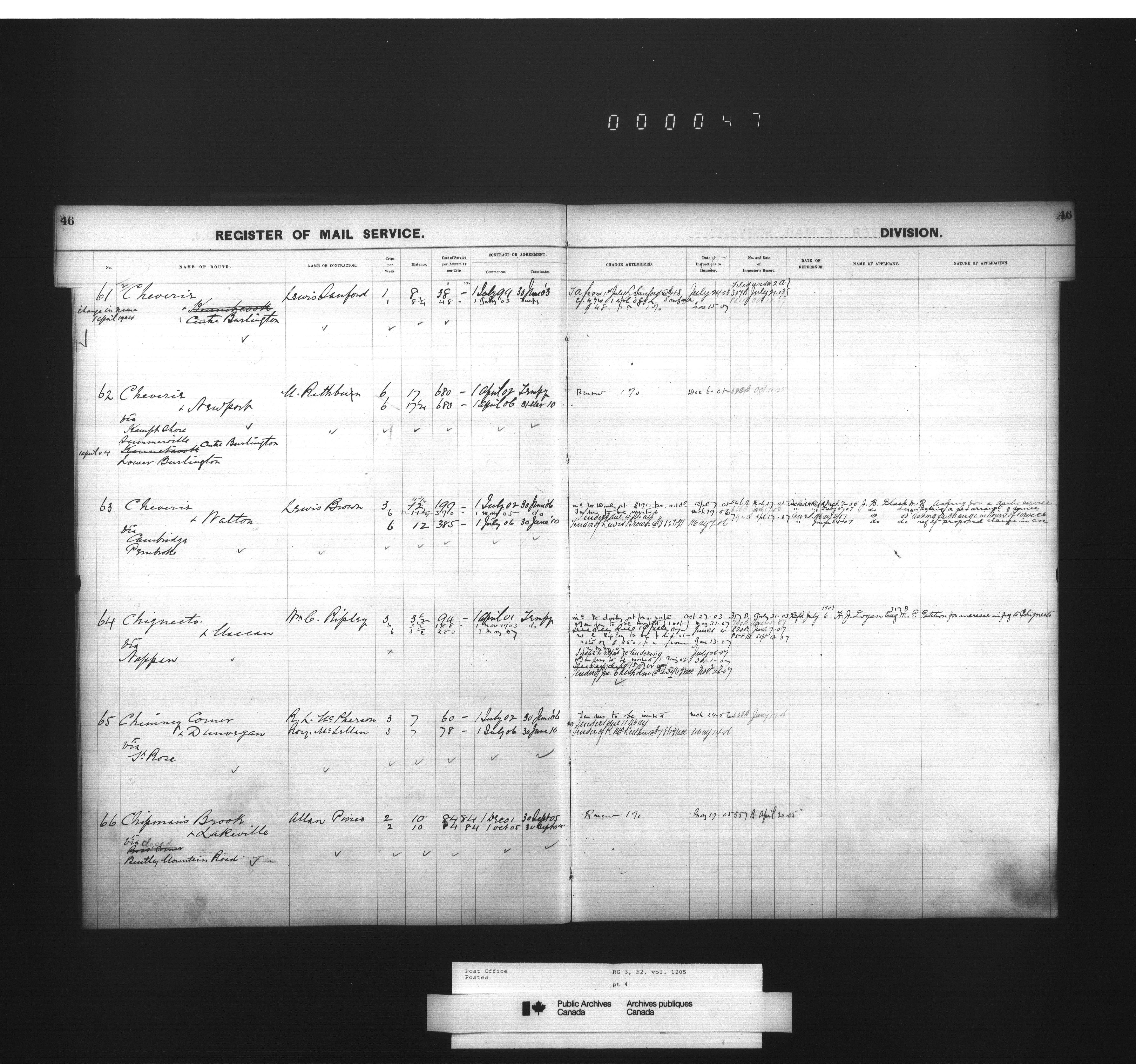 Post Office Department, Transportation Branch : Mail service contract registers - 2053