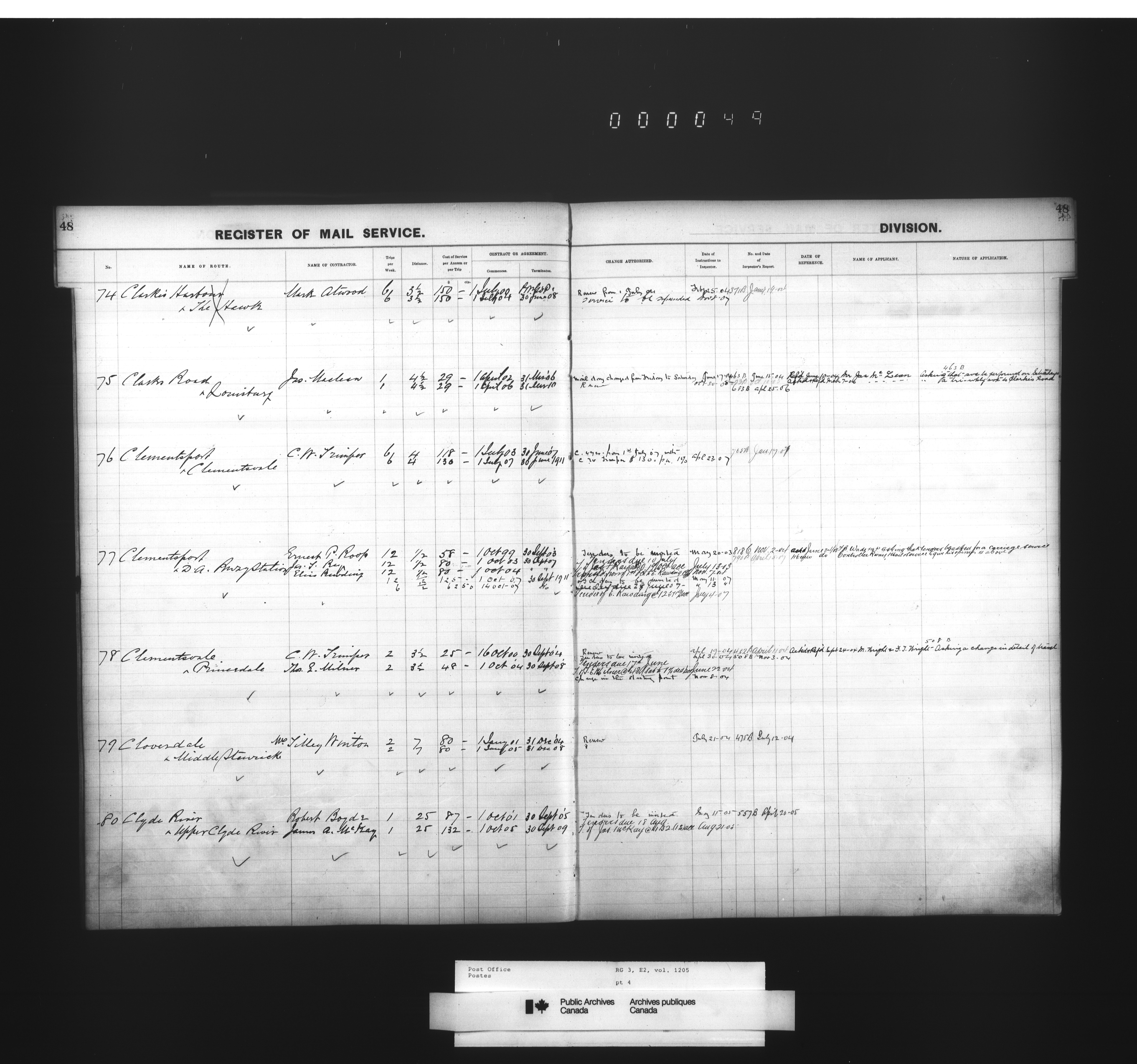 Post Office Department, Transportation Branch : Mail service contract registers - 2053