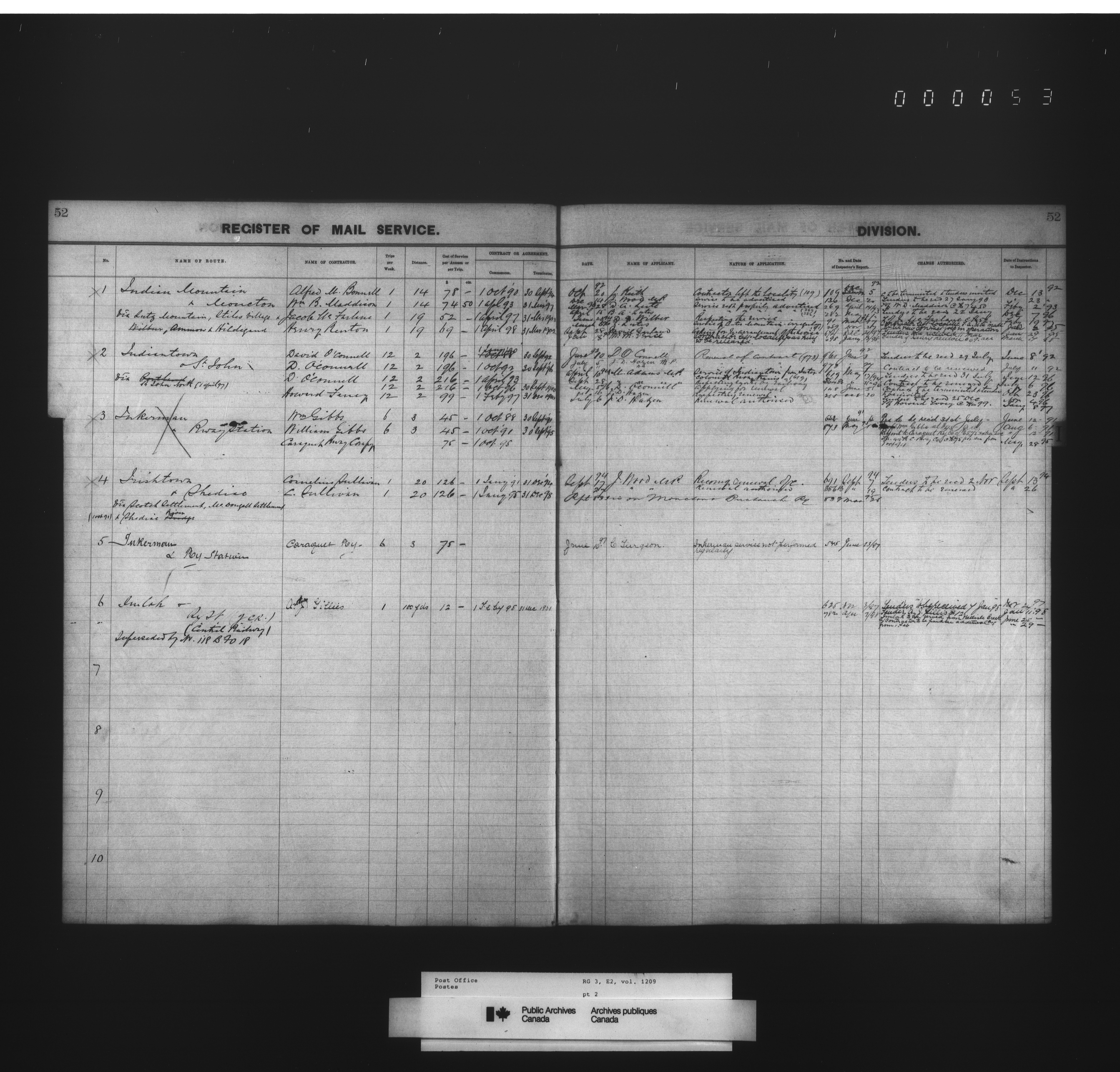 Post Office Department, Transportation Branch : Mail service contract registers - 2055