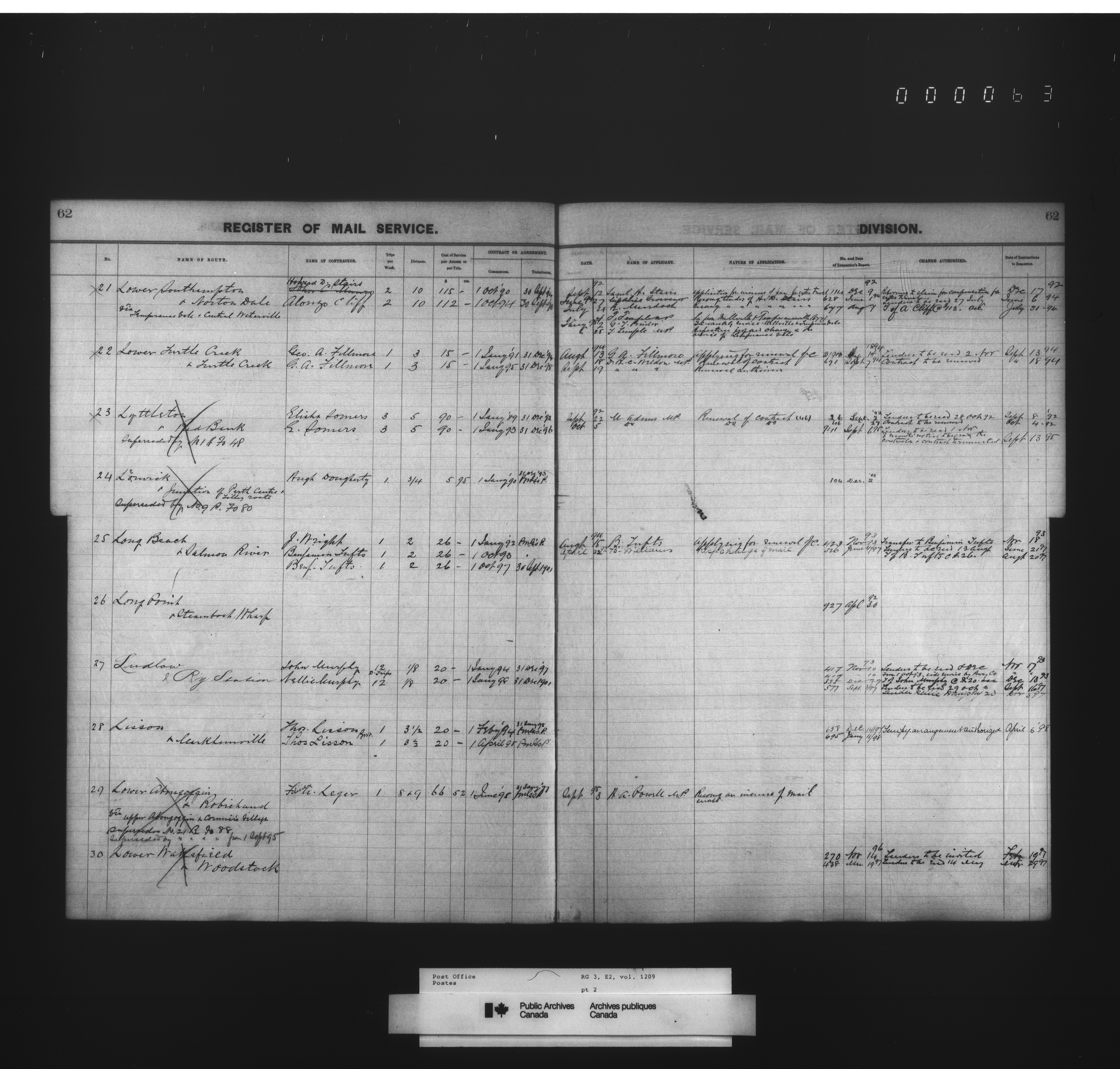 Post Office Department, Transportation Branch : Mail service contract registers - 2055