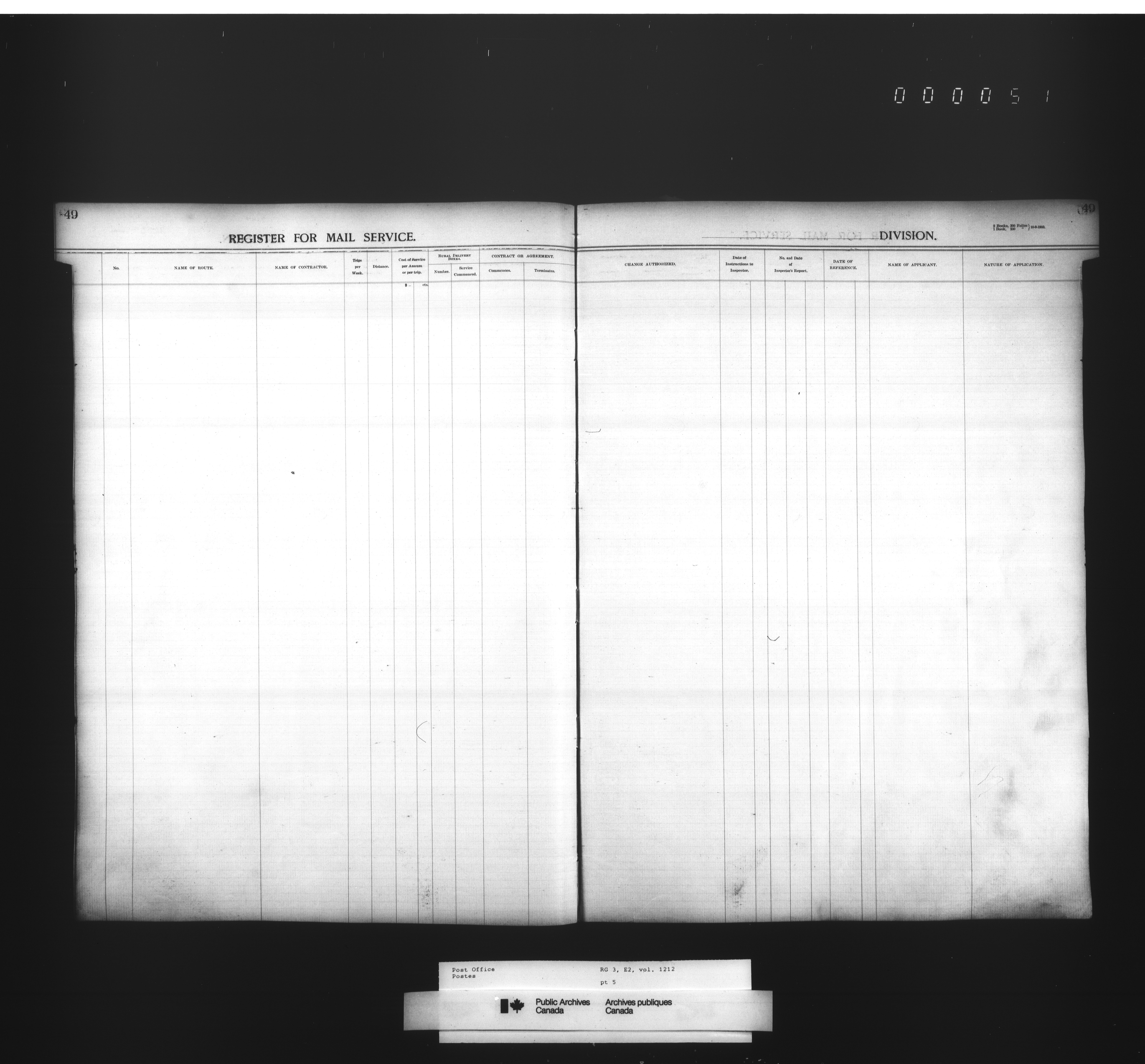 Post Office Department, Transportation Branch : Mail service contract registers - 2056