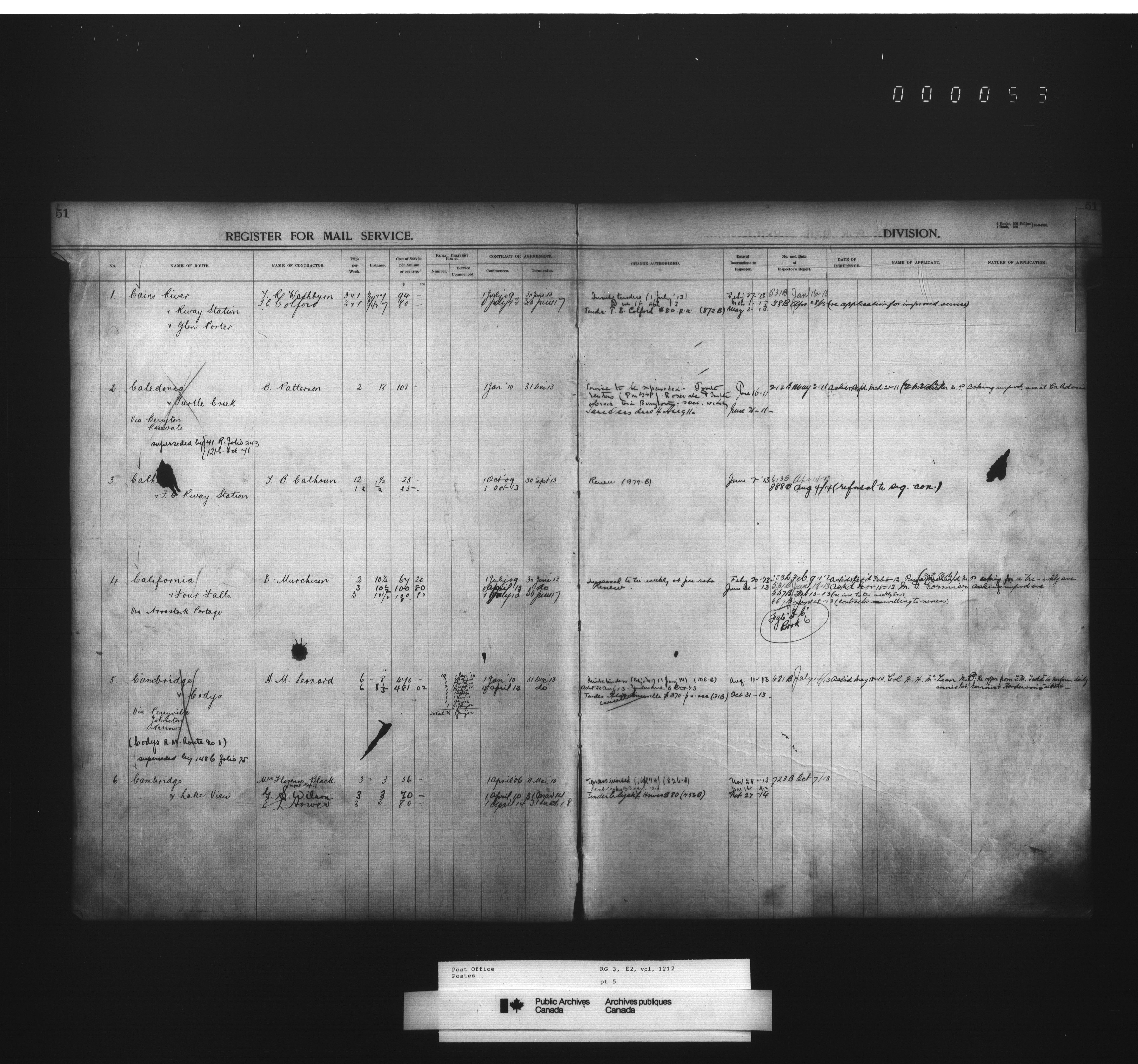 Post Office Department, Transportation Branch : Mail service contract registers - 2056