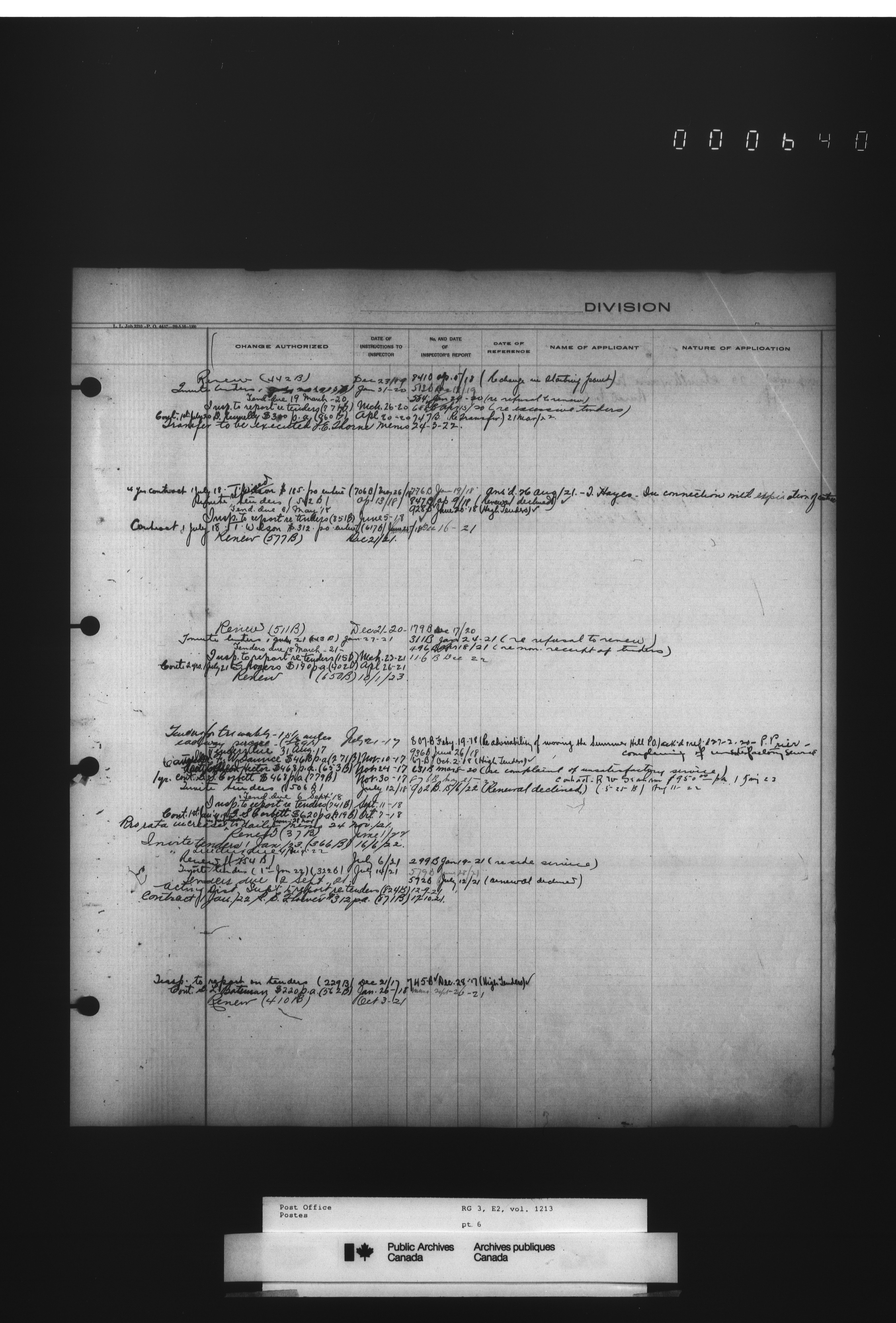 Post Office Department, Transportation Branch : Mail service contract registers - 2056