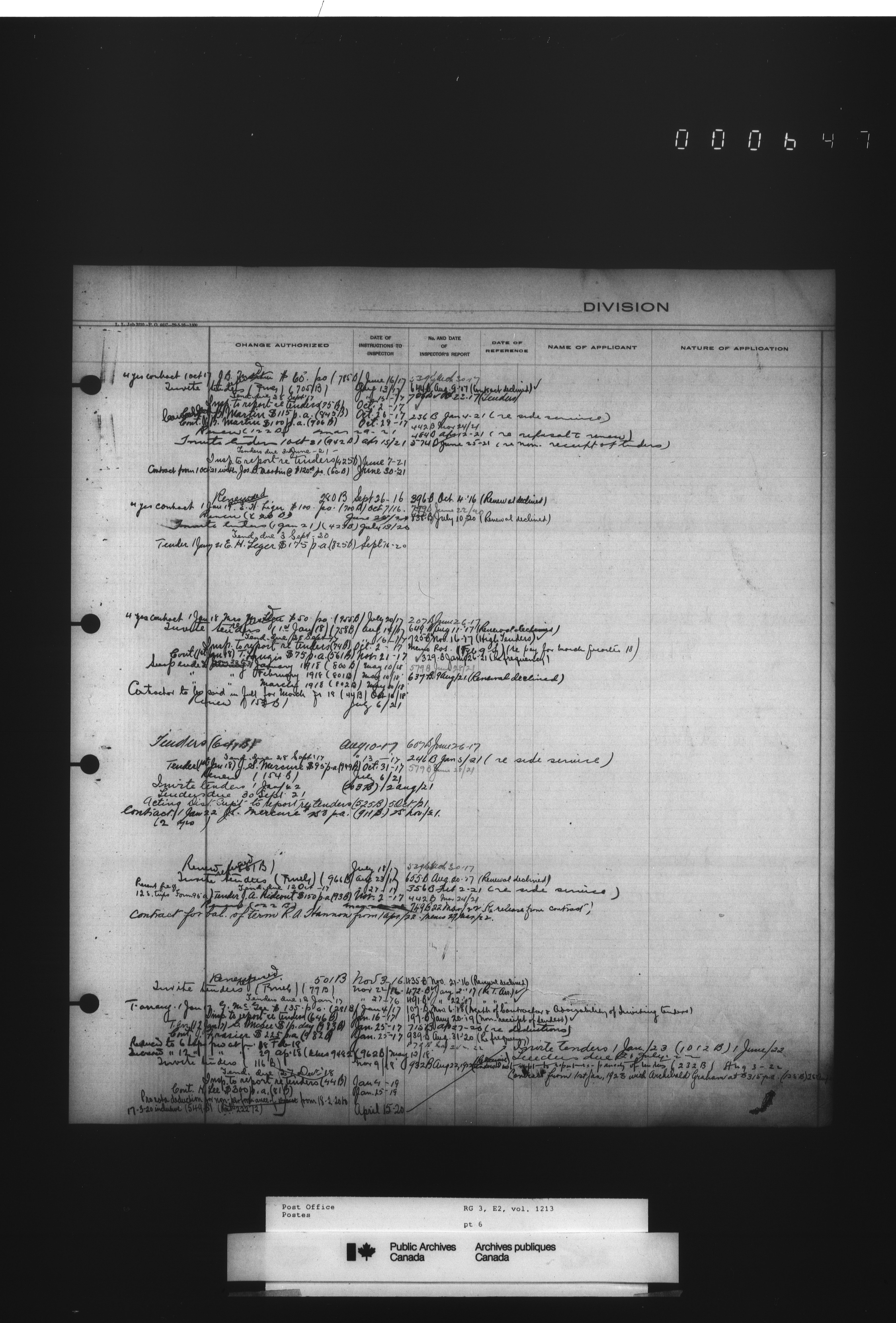 Post Office Department, Transportation Branch : Mail service contract registers - 2056