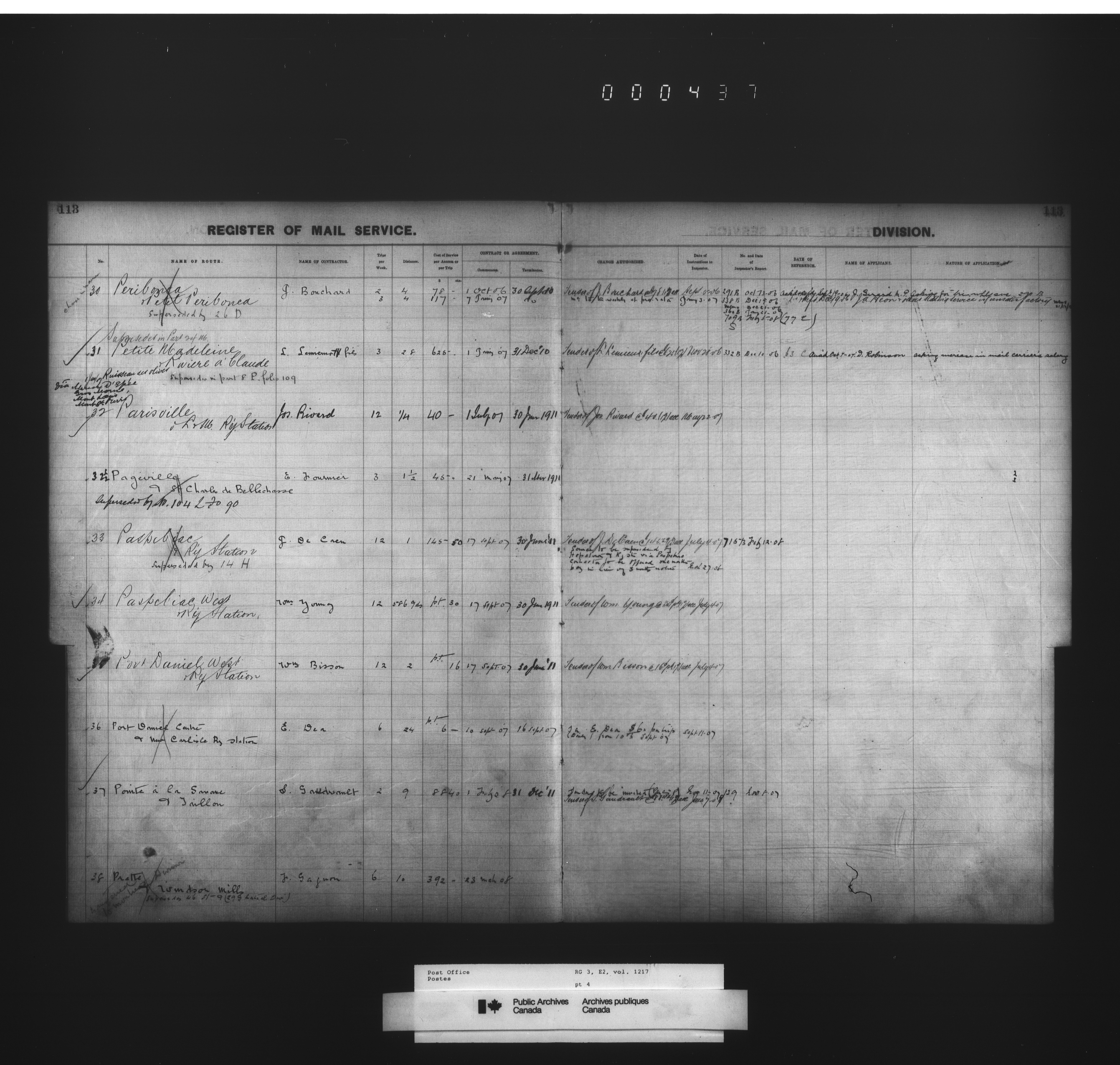 Post Office Department, Transportation Branch : Mail service contract registers - 2057