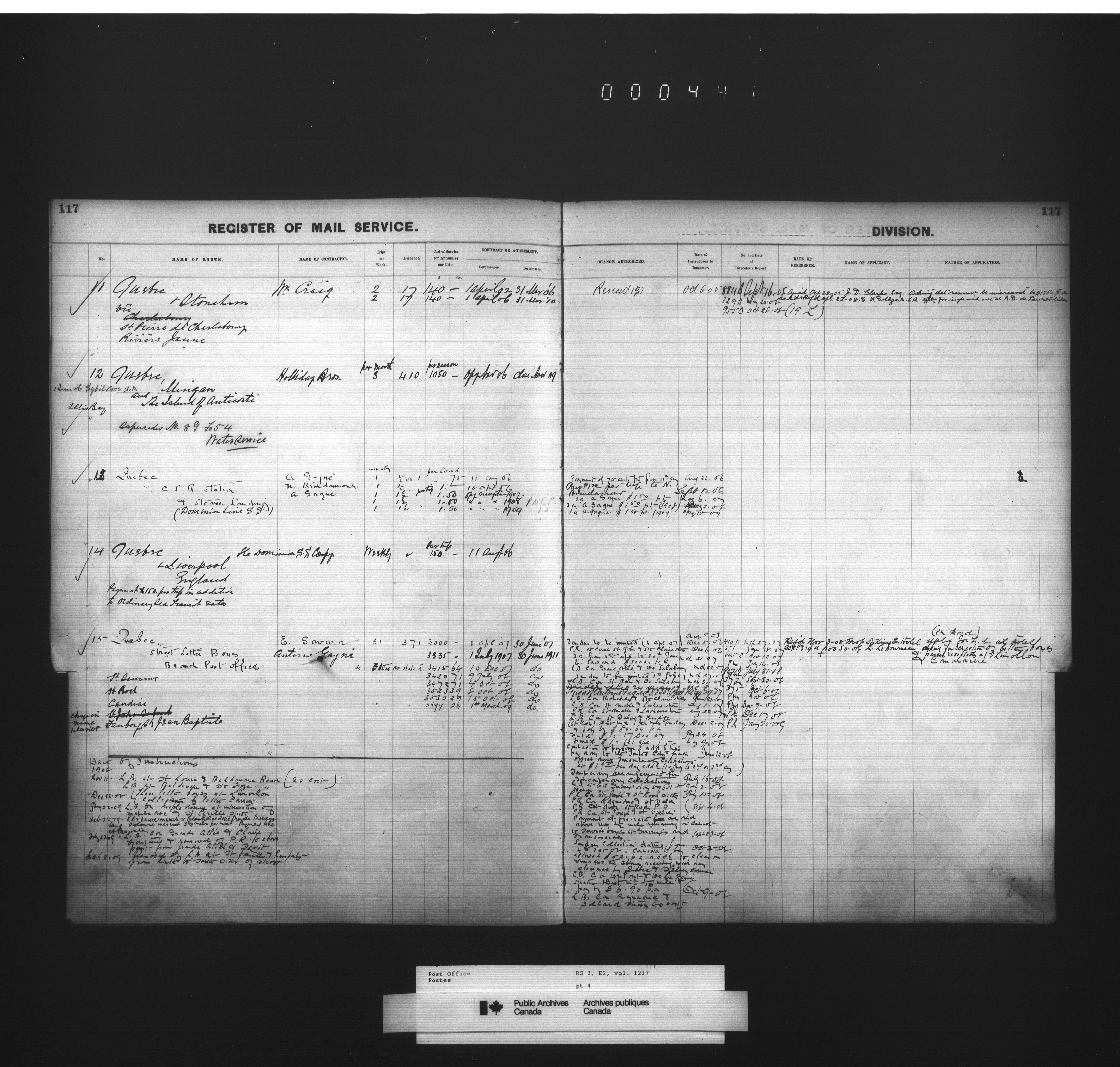 Post Office Department, Transportation Branch : Mail service contract registers - 2057