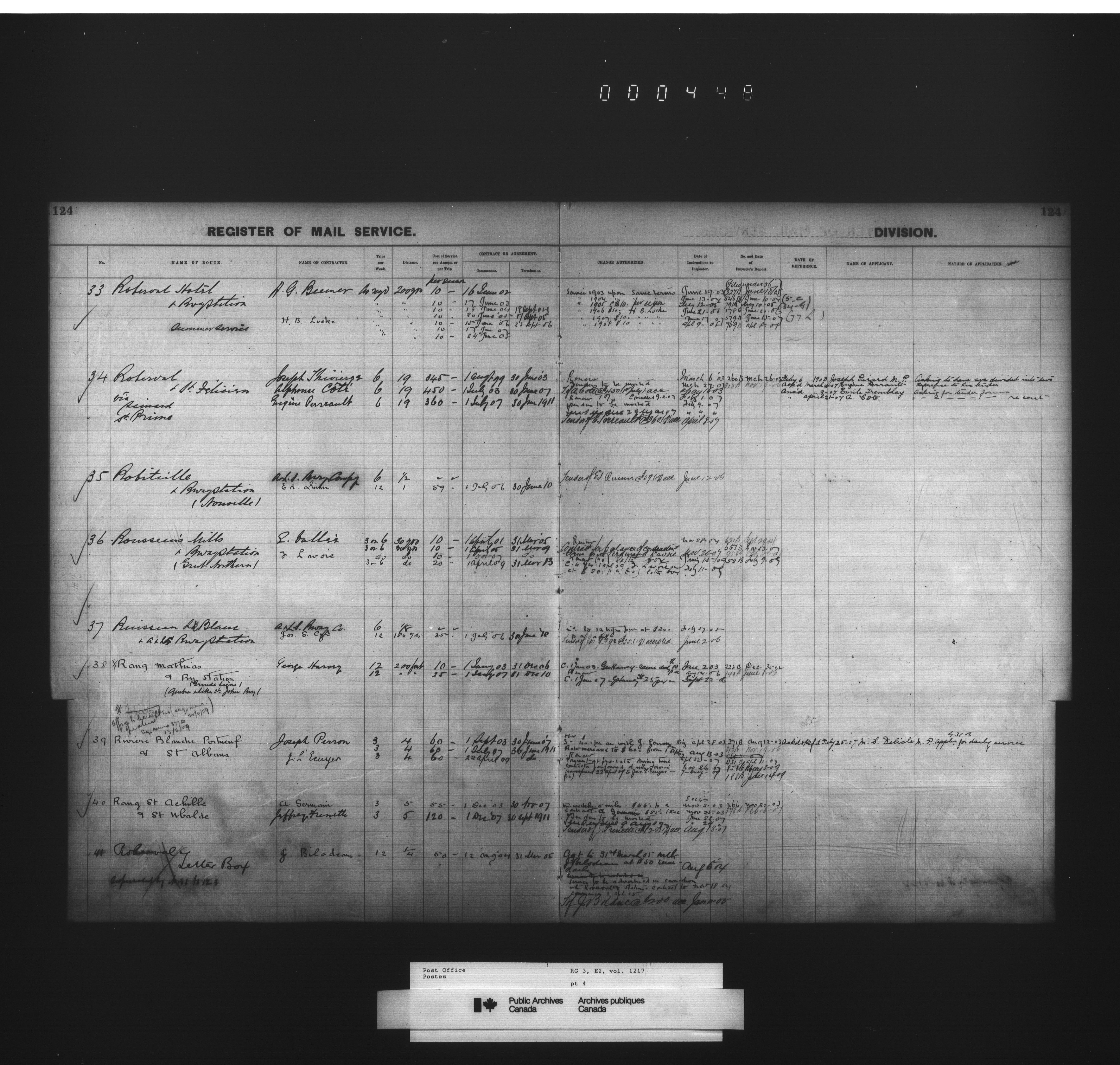 Post Office Department, Transportation Branch : Mail service contract registers - 2057