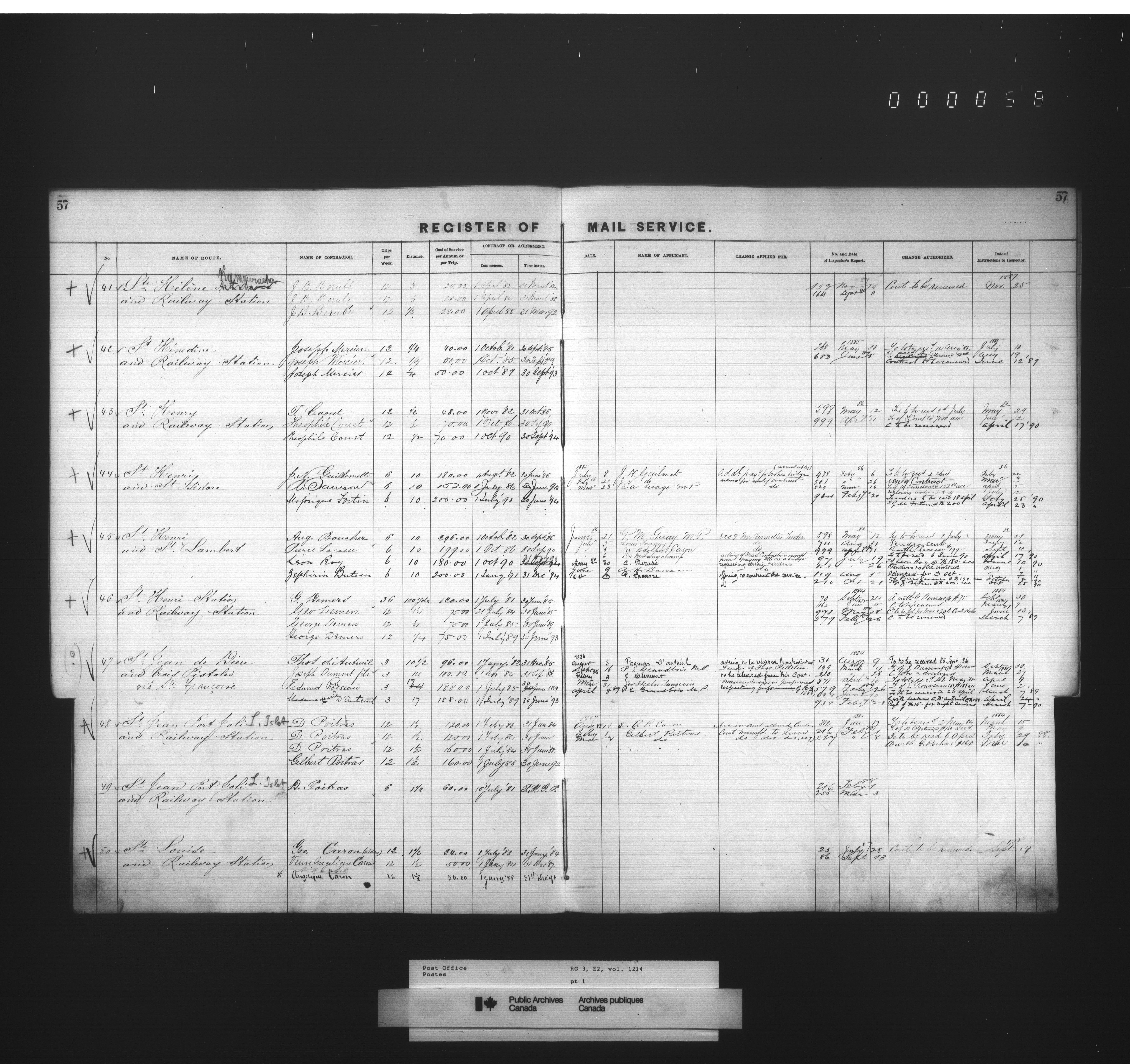 Post Office Department, Transportation Branch : Mail service contract registers - 2057
