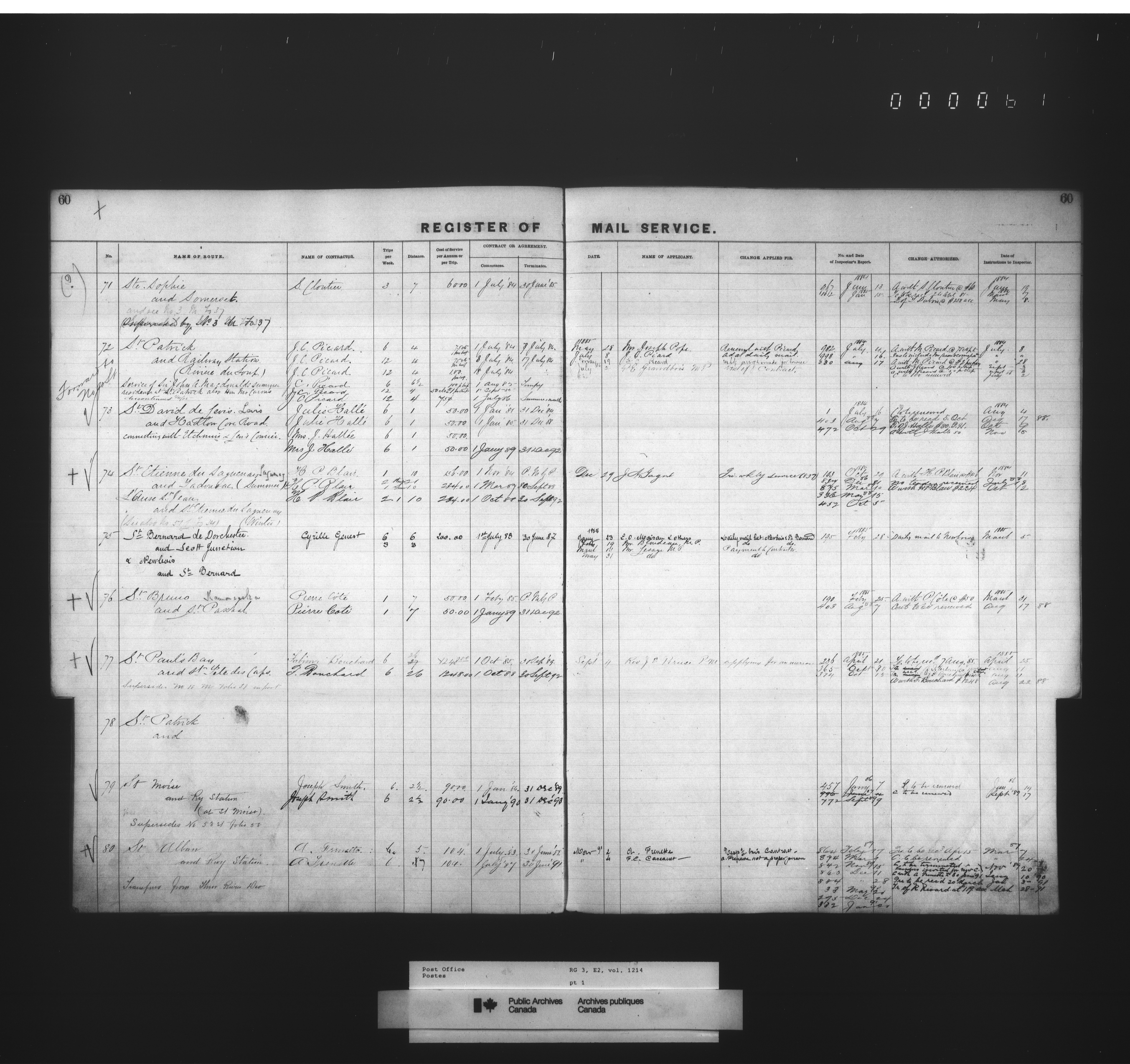 Post Office Department, Transportation Branch : Mail service contract registers - 2057