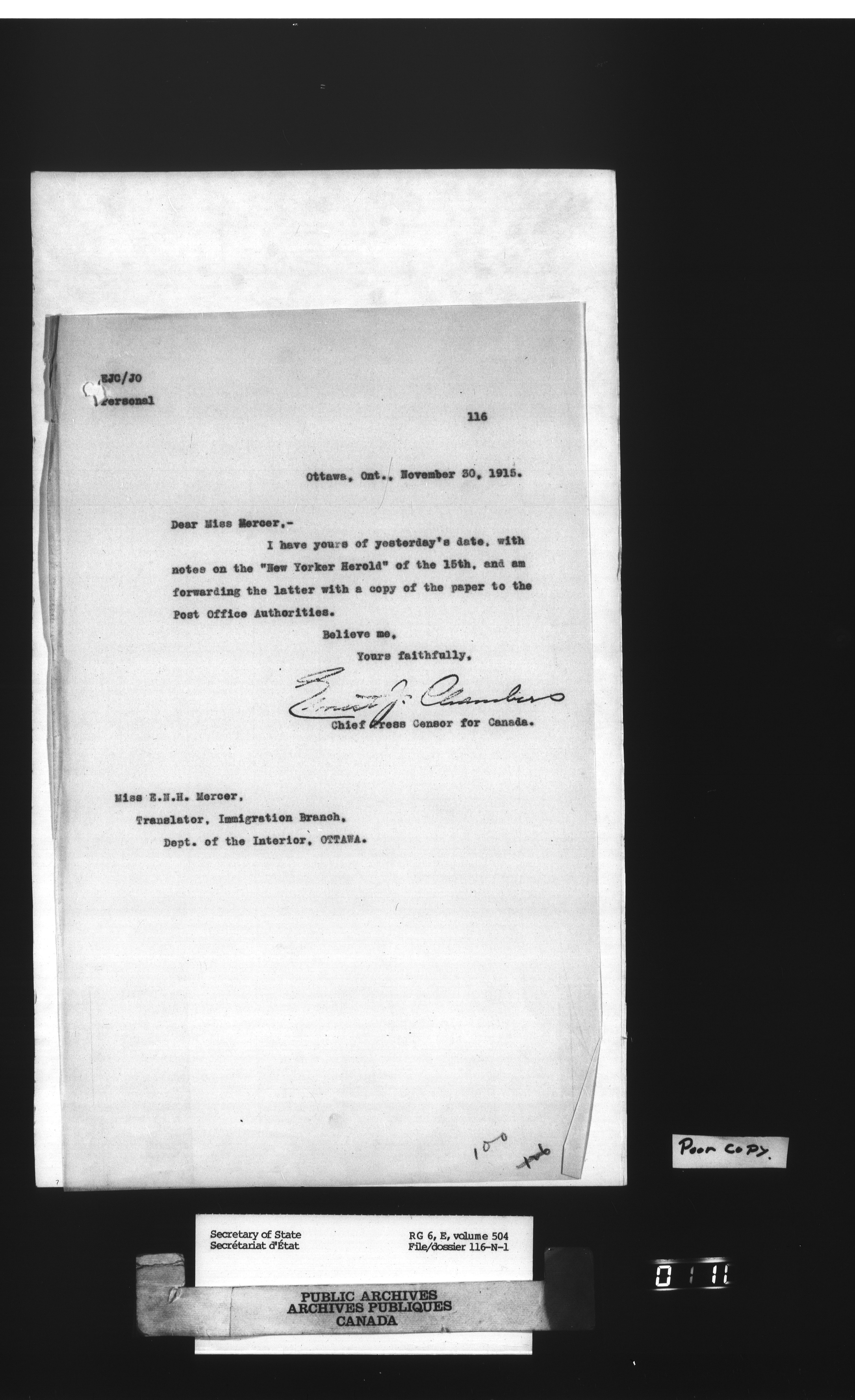 Secretary of State : Chief Press Censor : T-21