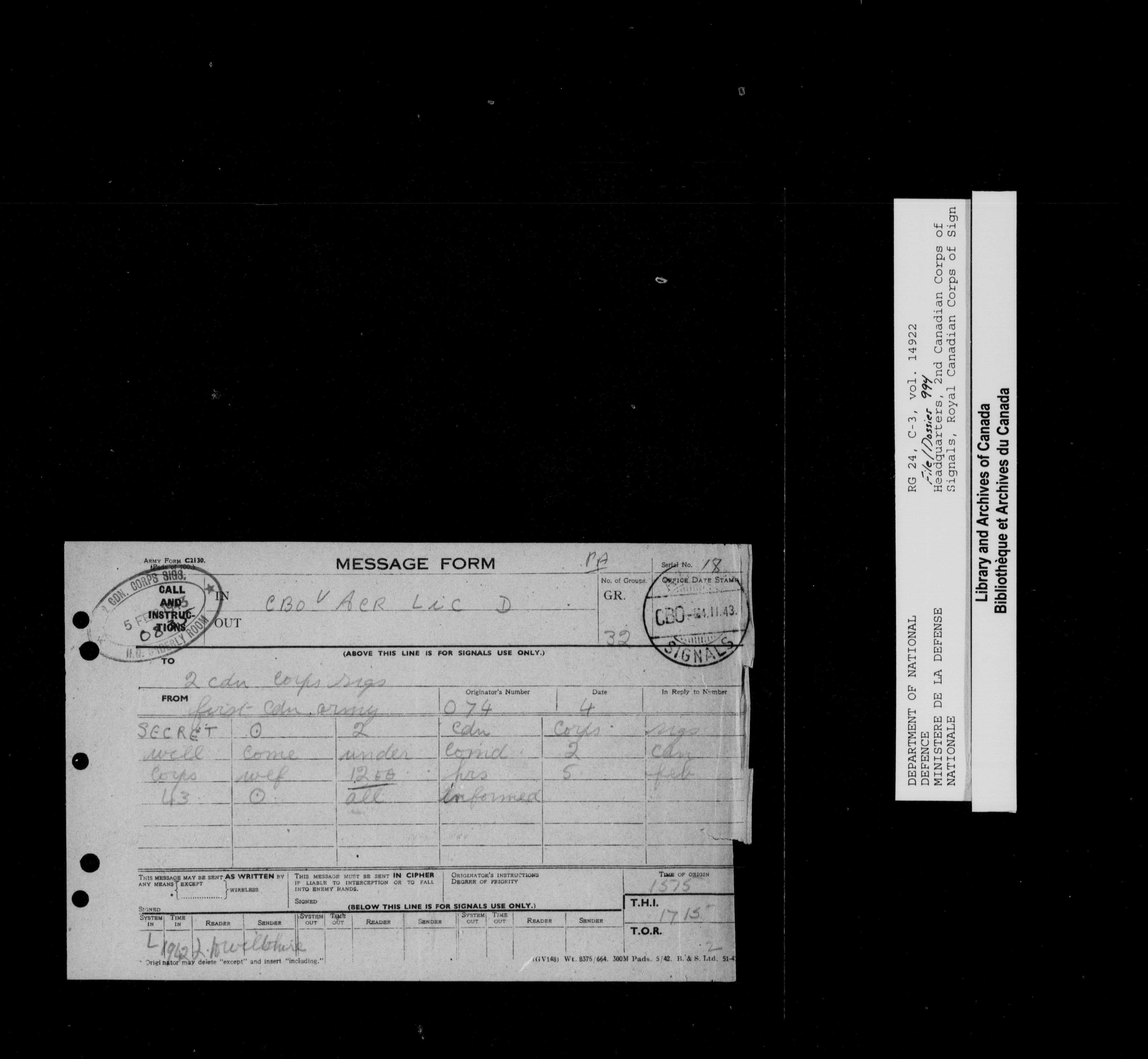 War diaries, 1939-1945 - 21323