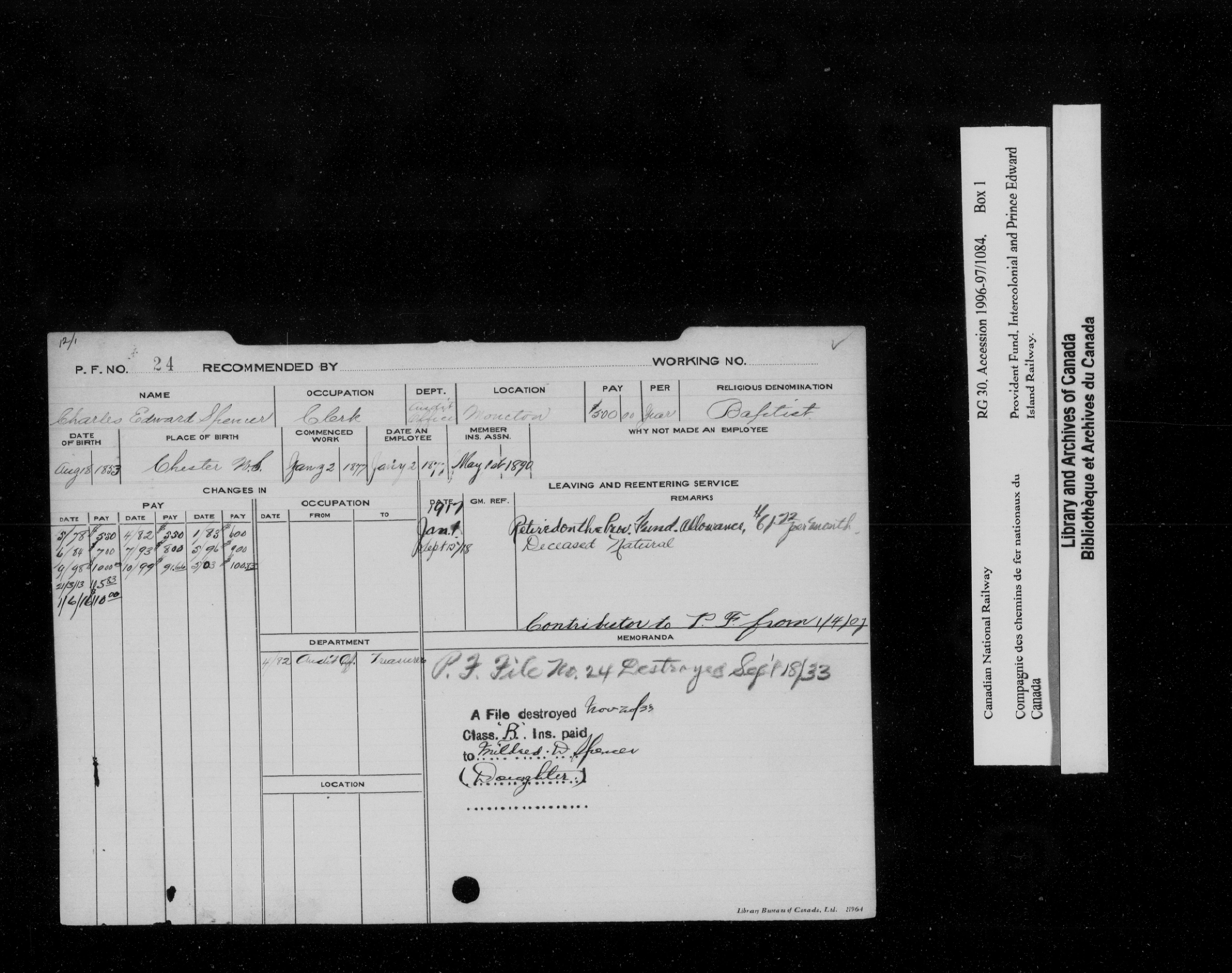 Intercolonial and Prince Edward Island Railways Employees' Provident Fund, 1907-1959 - 21765