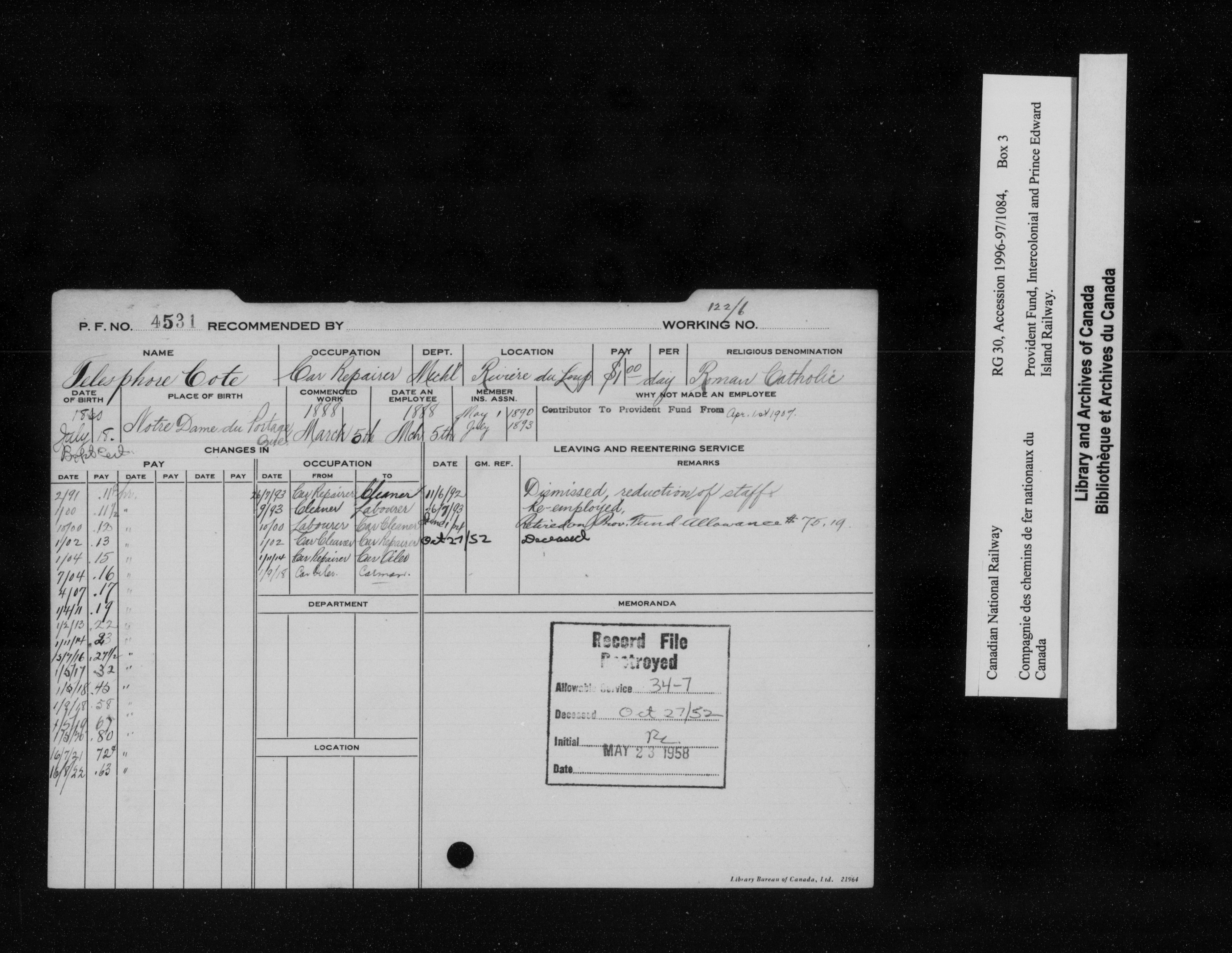 Intercolonial and Prince Edward Island Railways Employees' Provident Fund, 1907-1959 - 21767