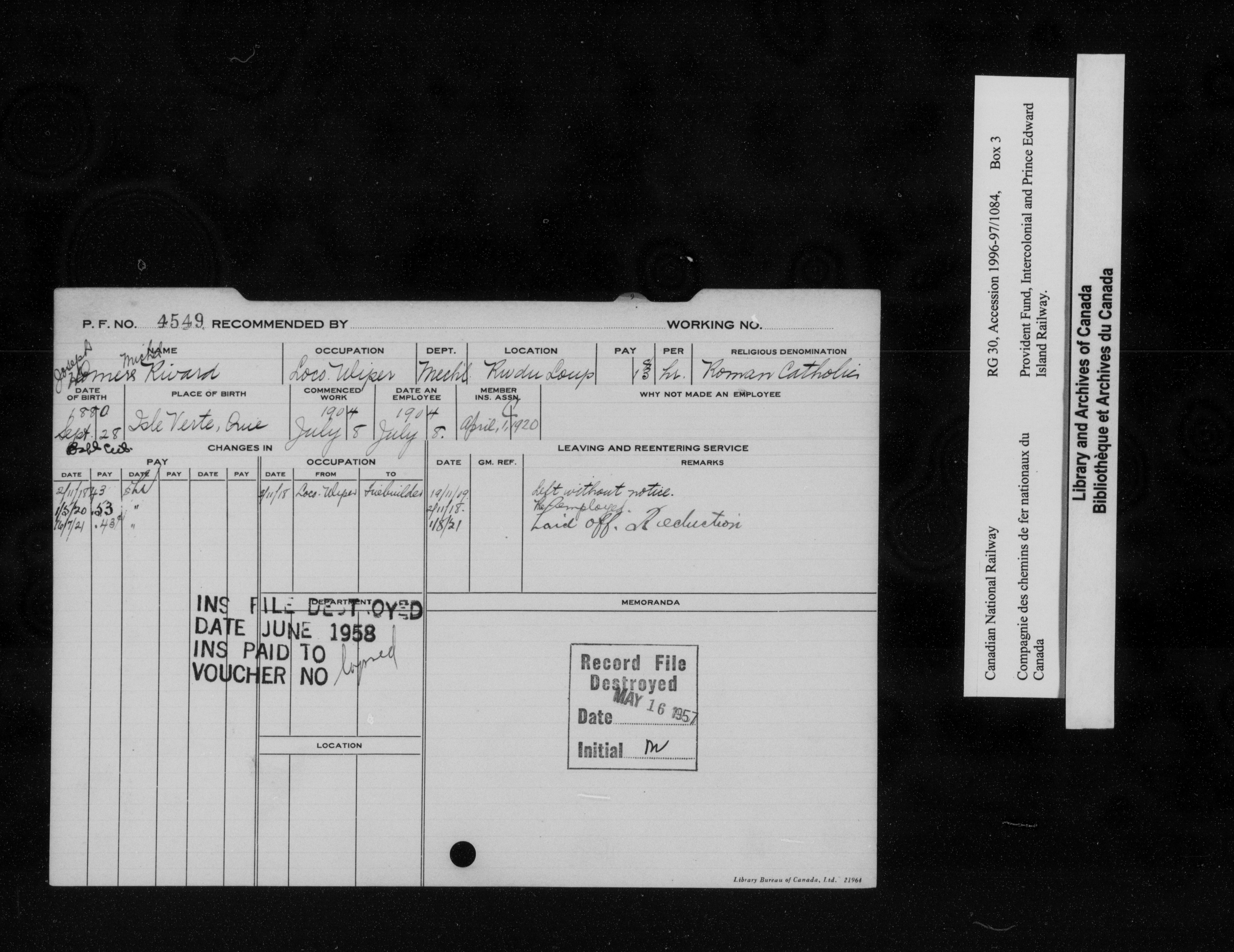 Intercolonial and Prince Edward Island Railways Employees' Provident Fund, 1907-1959 - 21767