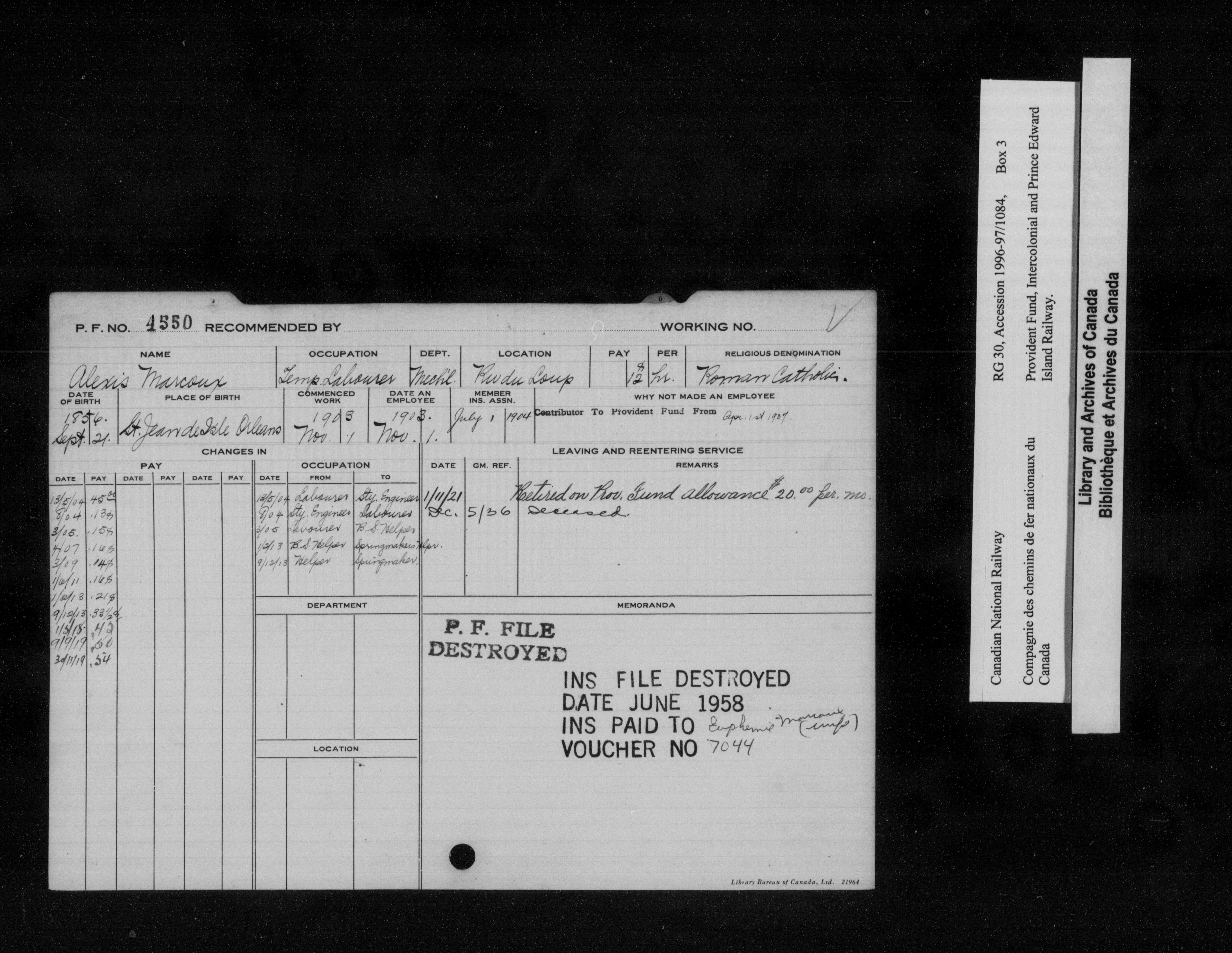 Intercolonial and Prince Edward Island Railways Employees' Provident Fund, 1907-1959 - 21767