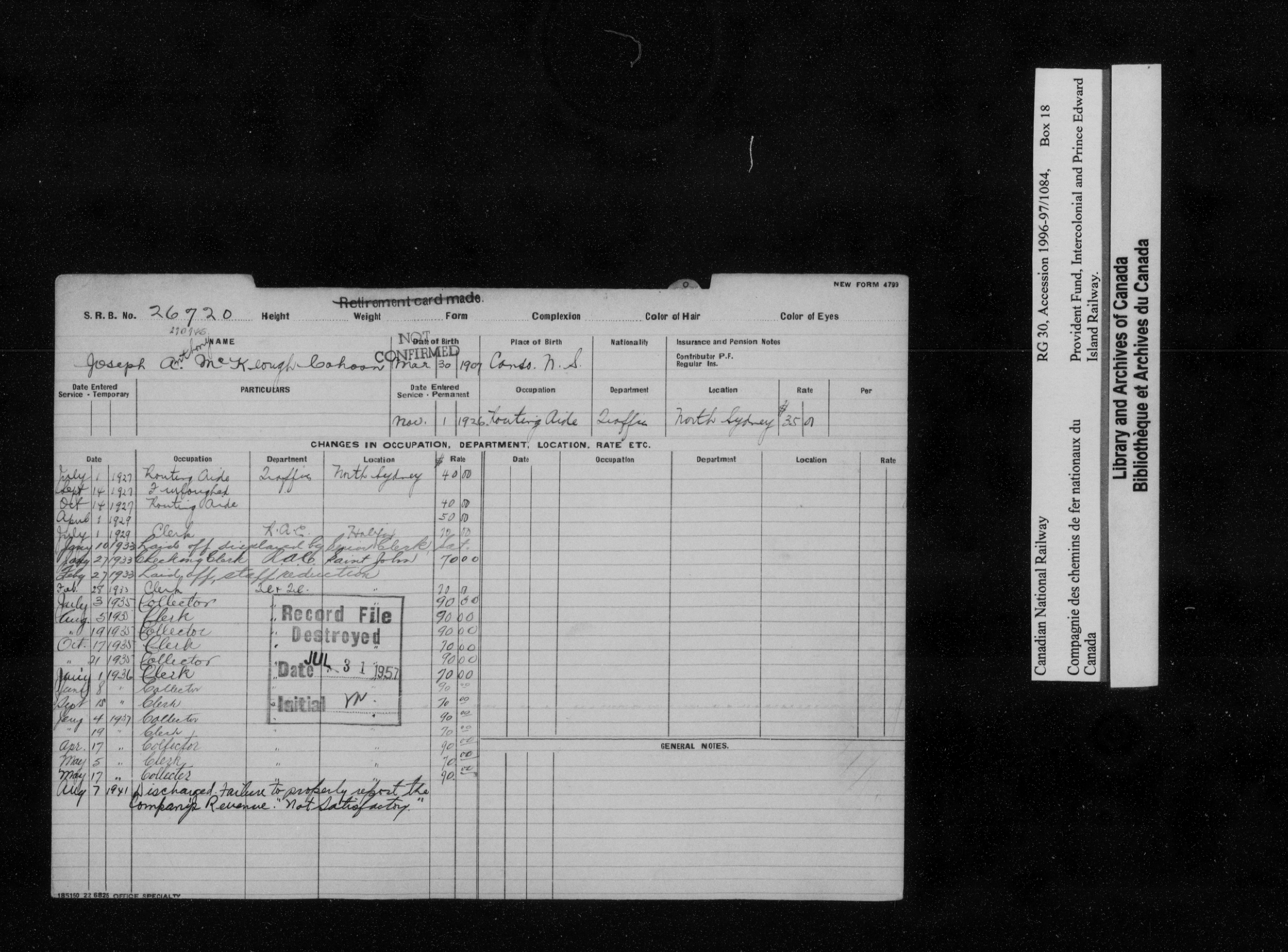 Intercolonial and Prince Edward Island Railways Employees' Provident Fund, 1907-1959 - 21768