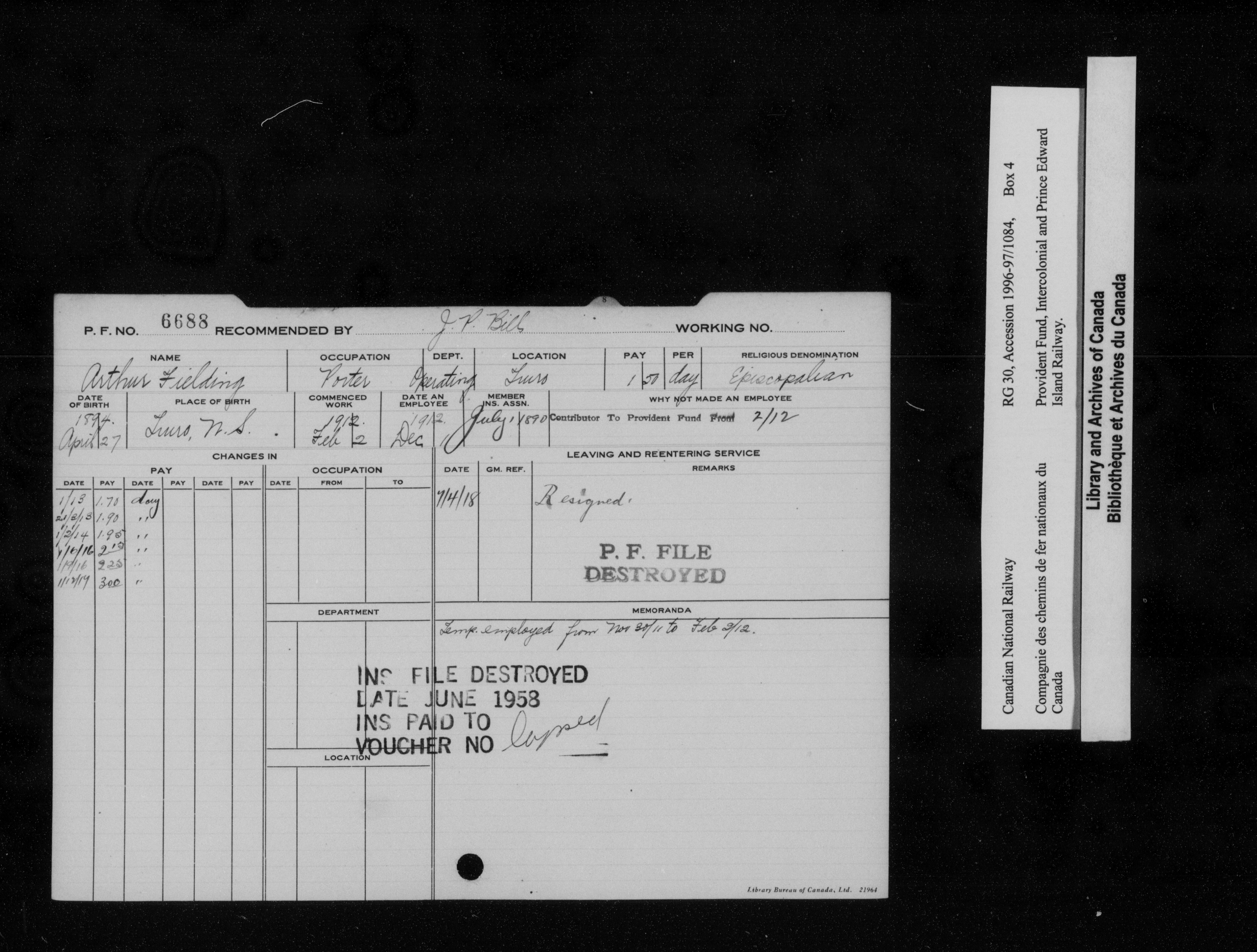 Intercolonial and Prince Edward Island Railways Employees' Provident Fund, 1907-1959 - 21771