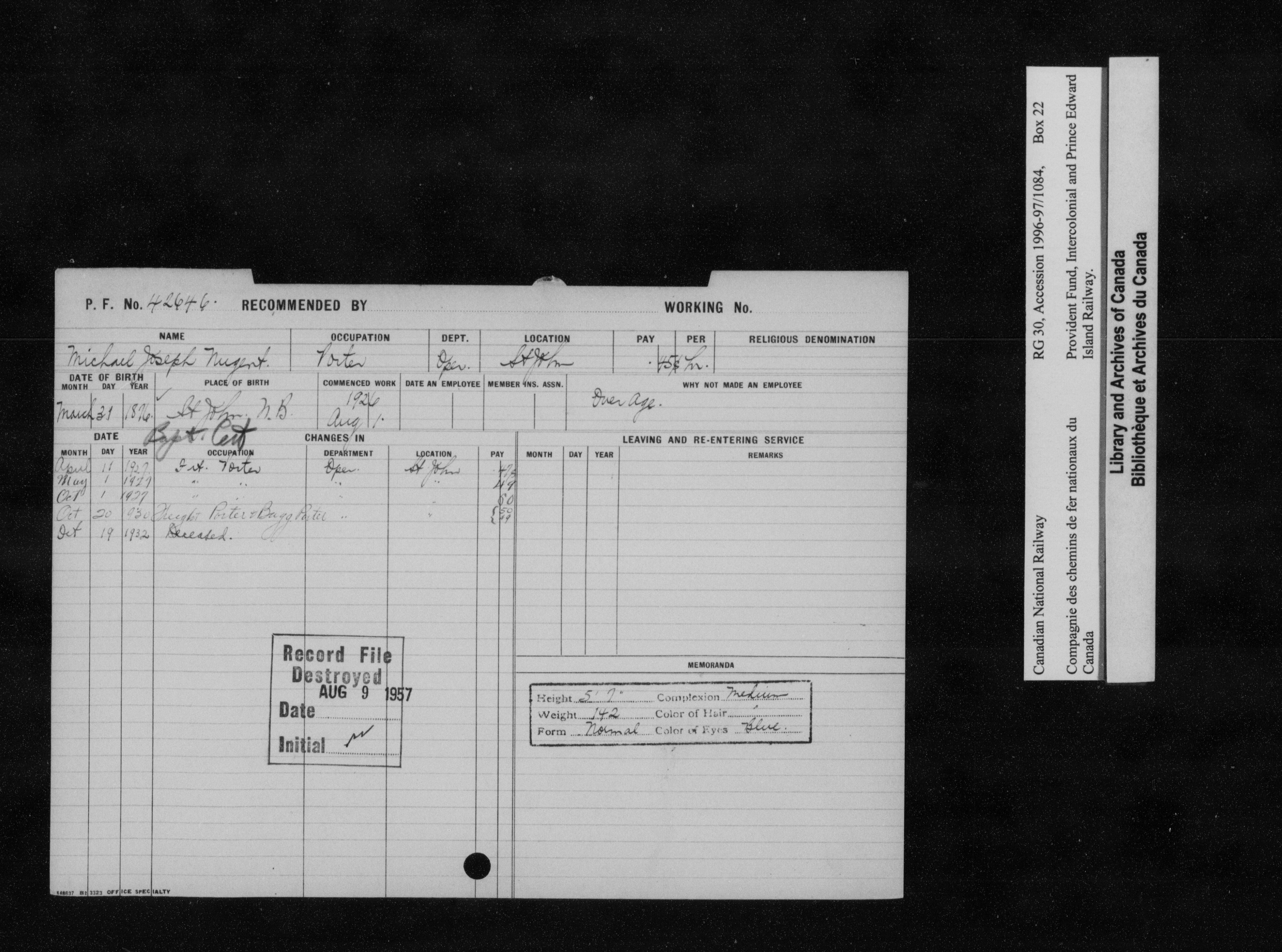 Intercolonial and Prince Edward Island Railways Employees' Provident Fund, 1907-1959 - 21772