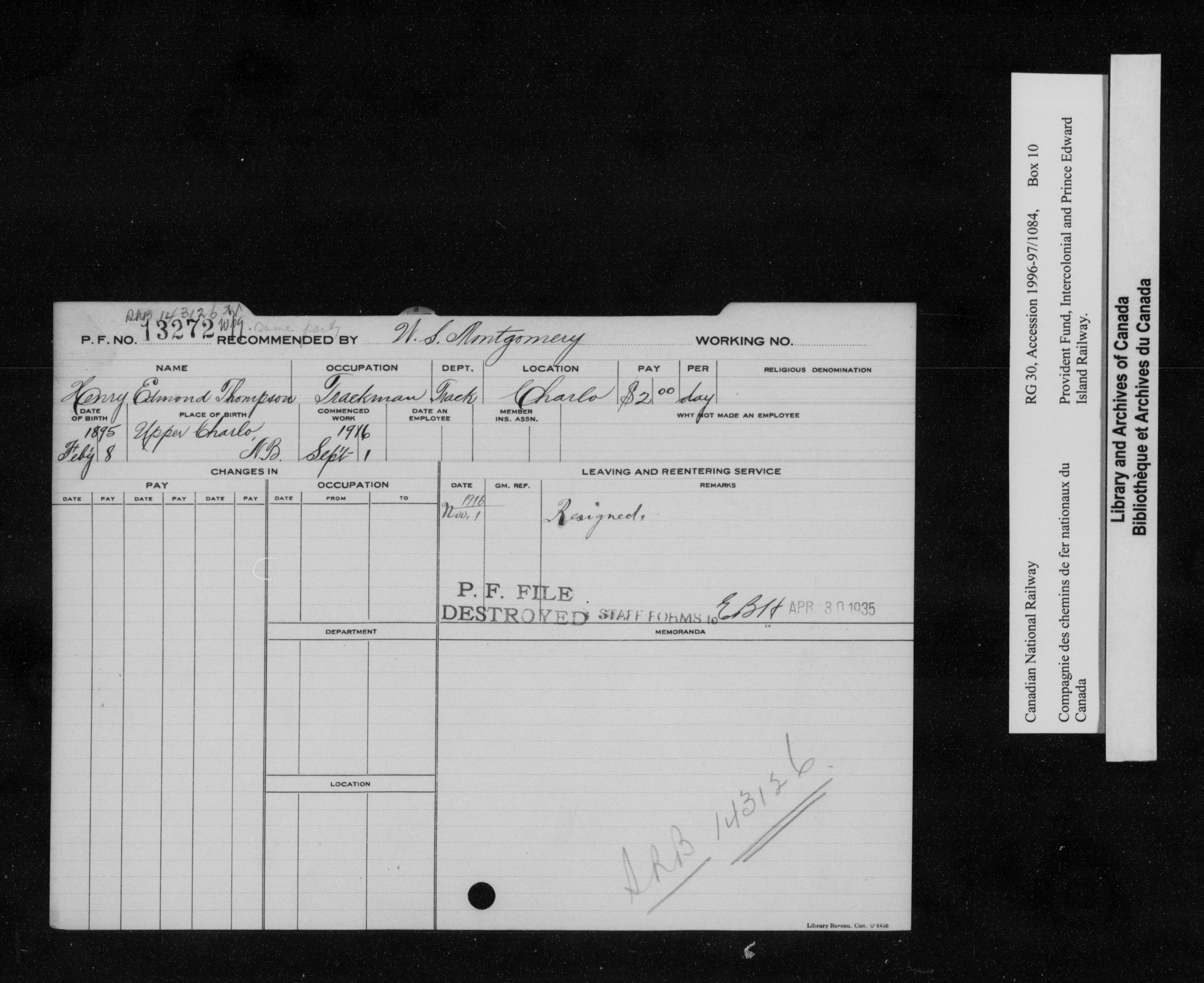 Intercolonial and Prince Edward Island Railways Employees' Provident Fund, 1907-1959 - 21779