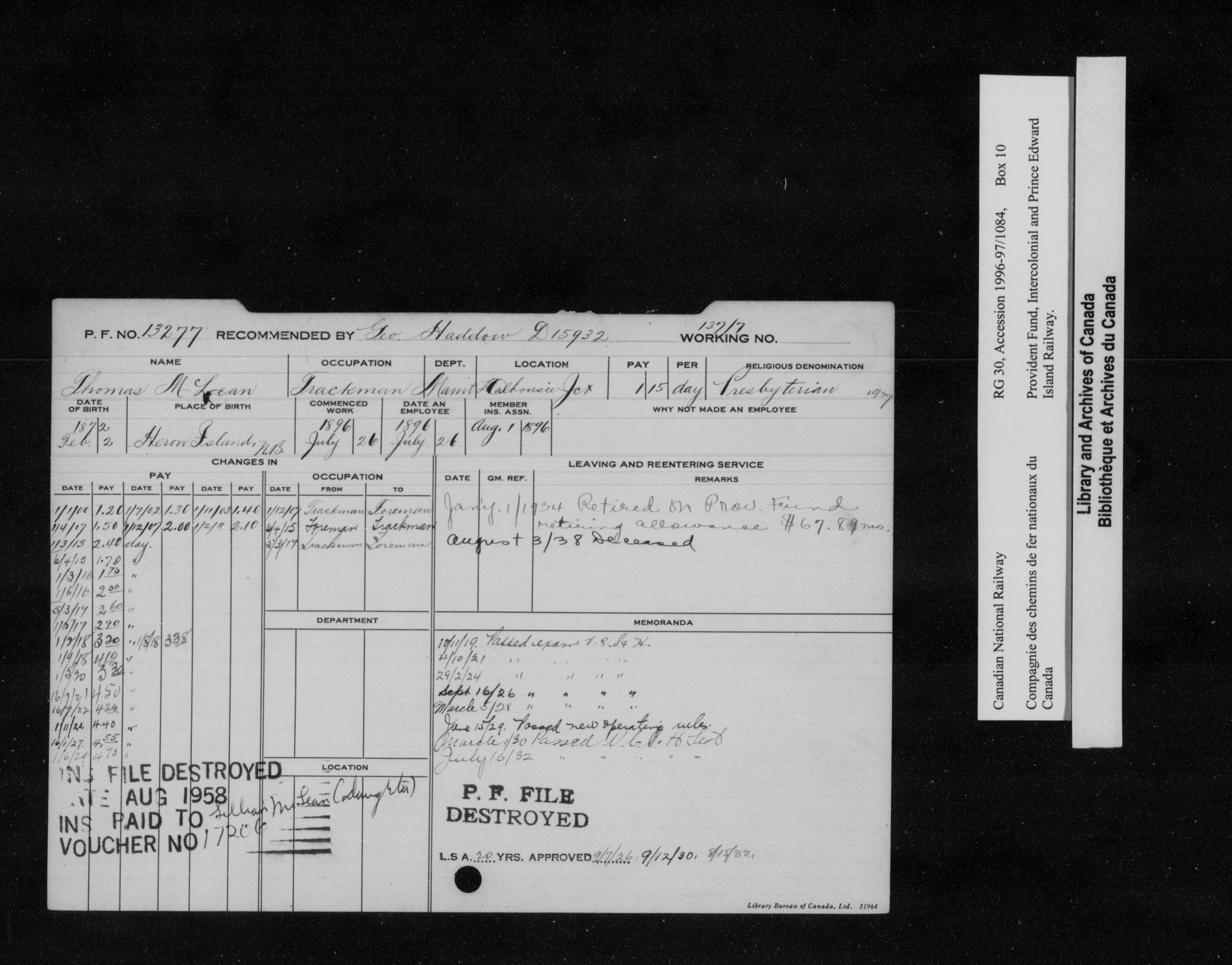 Intercolonial and Prince Edward Island Railways Employees' Provident Fund, 1907-1959 - 21779