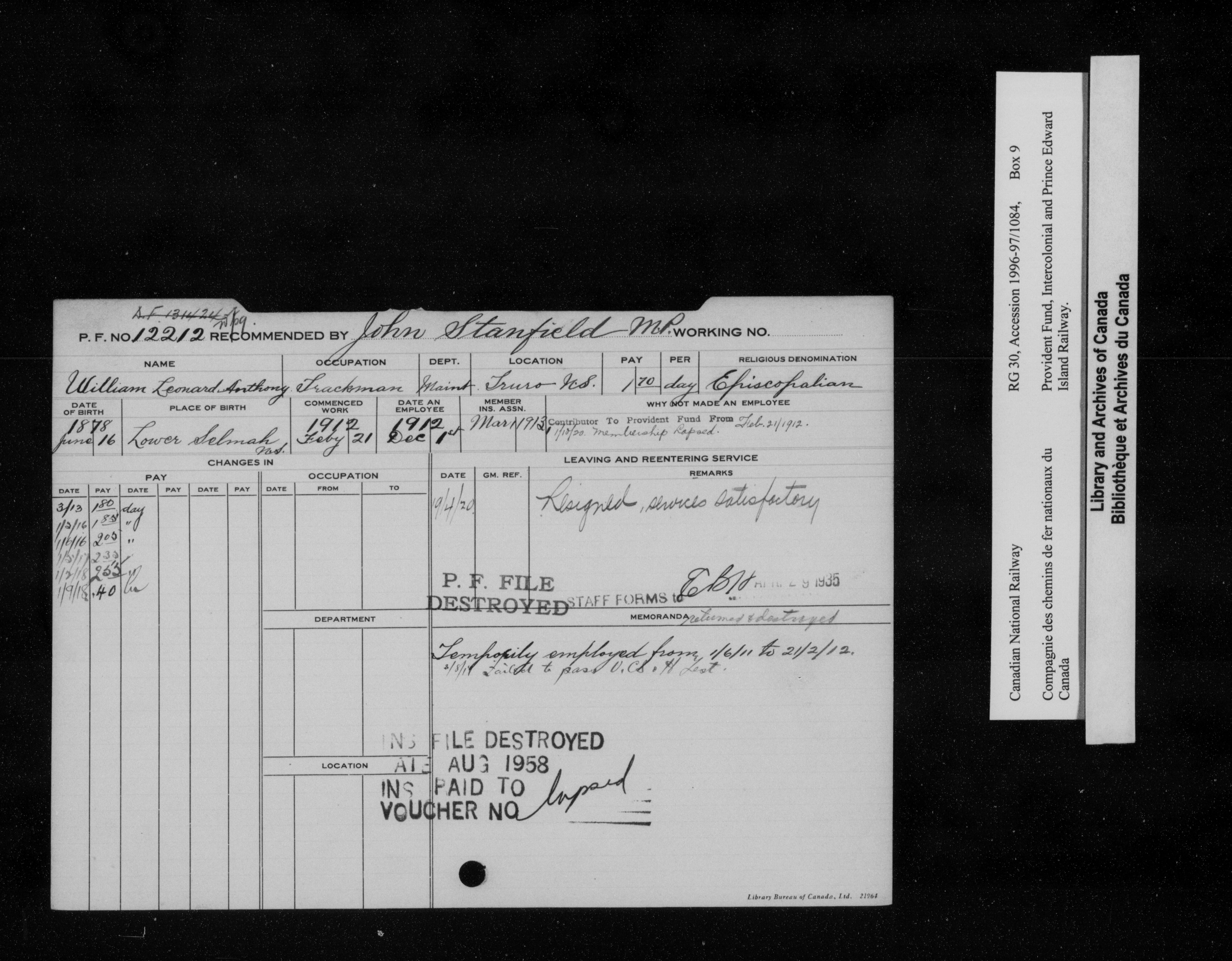Intercolonial and Prince Edward Island Railways Employees' Provident Fund, 1907-1959 - 21779