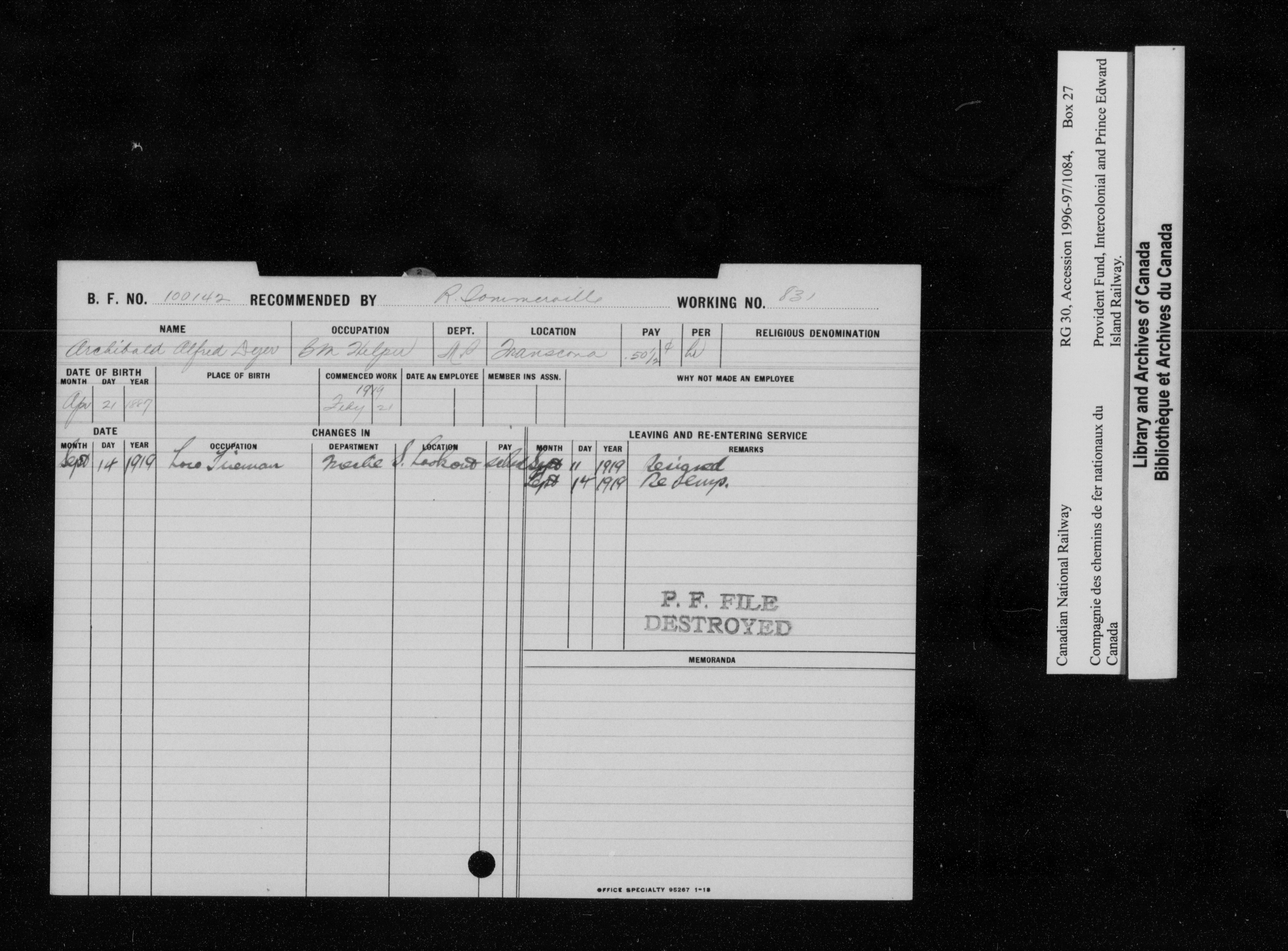 Intercolonial and Prince Edward Island Railways Employees' Provident Fund, 1907-1959 - 21780