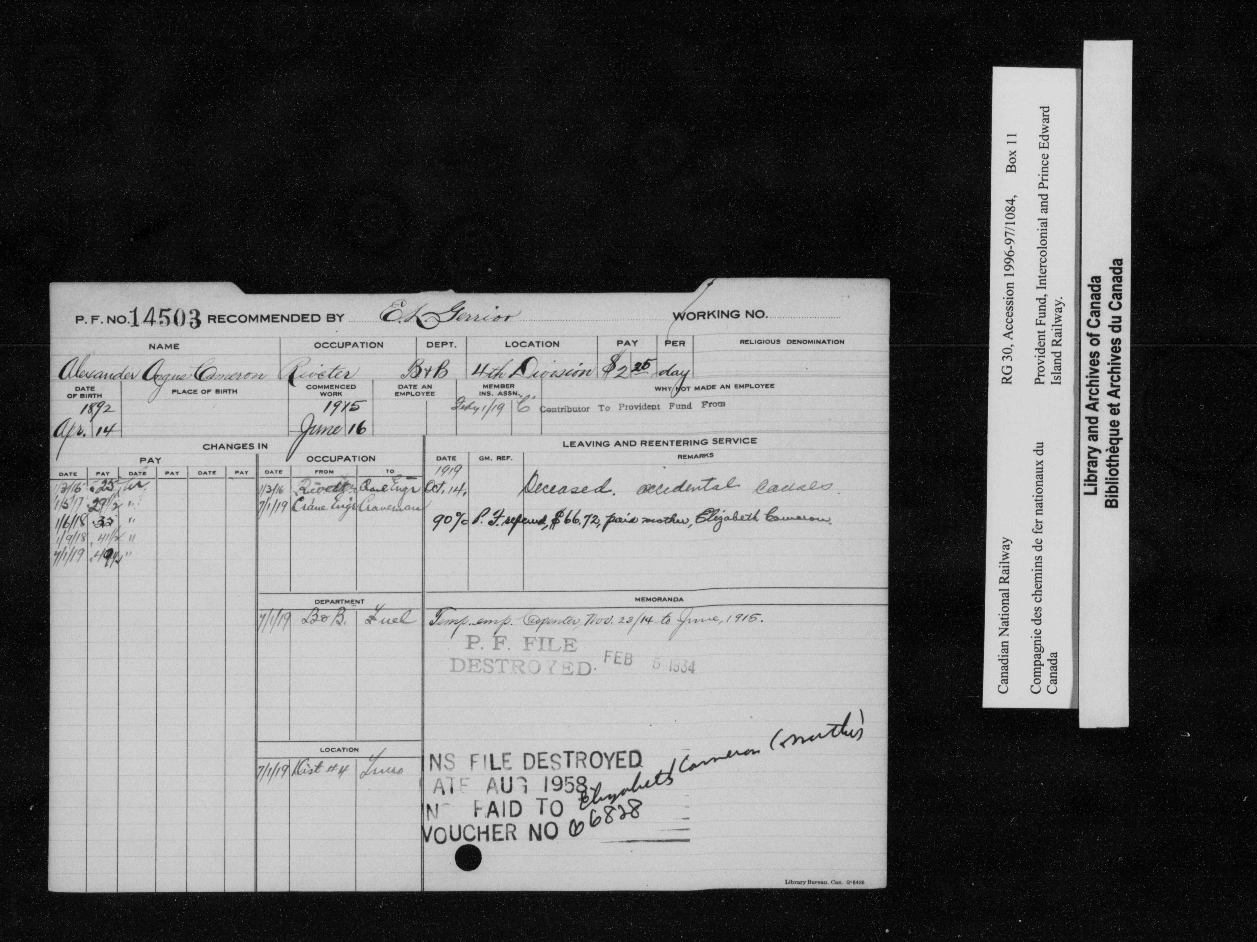 Intercolonial and Prince Edward Island Railways Employees' Provident Fund, 1907-1959 - 21781