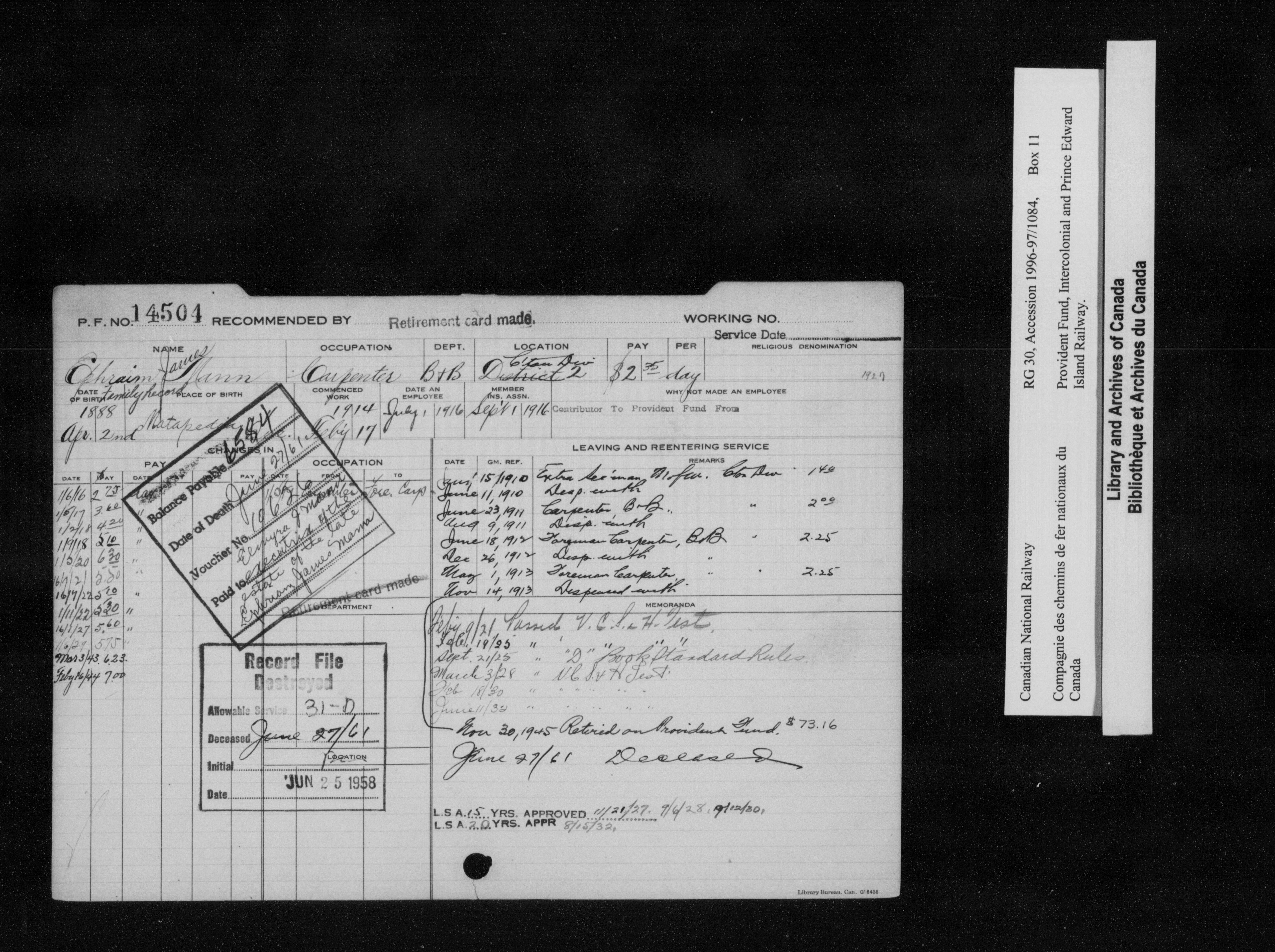 Intercolonial and Prince Edward Island Railways Employees' Provident Fund, 1907-1959 - 21781