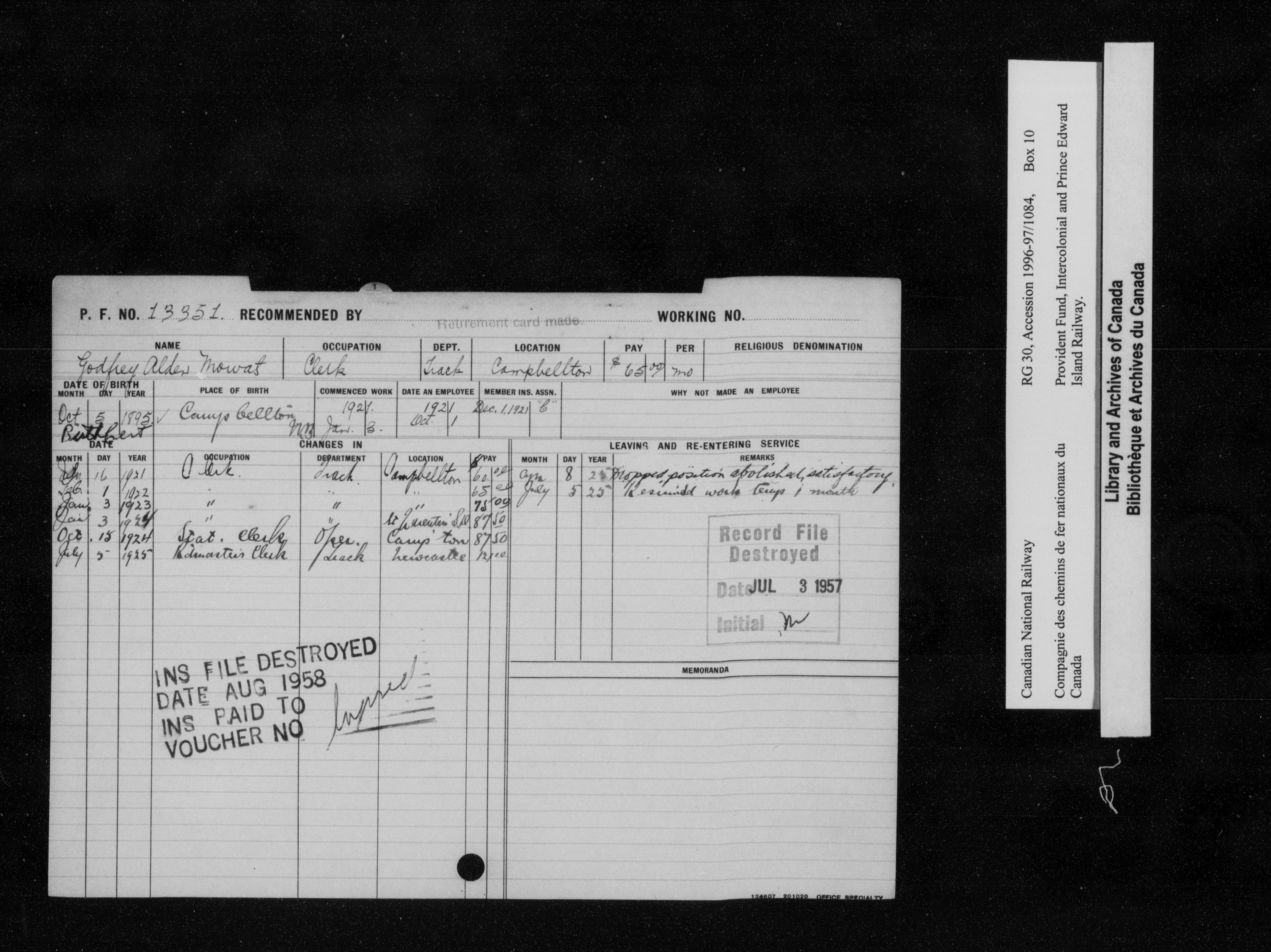 Intercolonial and Prince Edward Island Railways Employees' Provident Fund, 1907-1959 - 21781